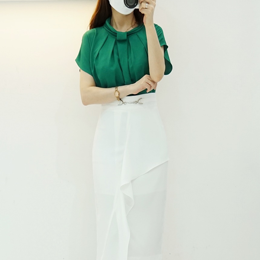 썸머 핀턱 꼬임넥 쉬폰 블라우스 하객룩