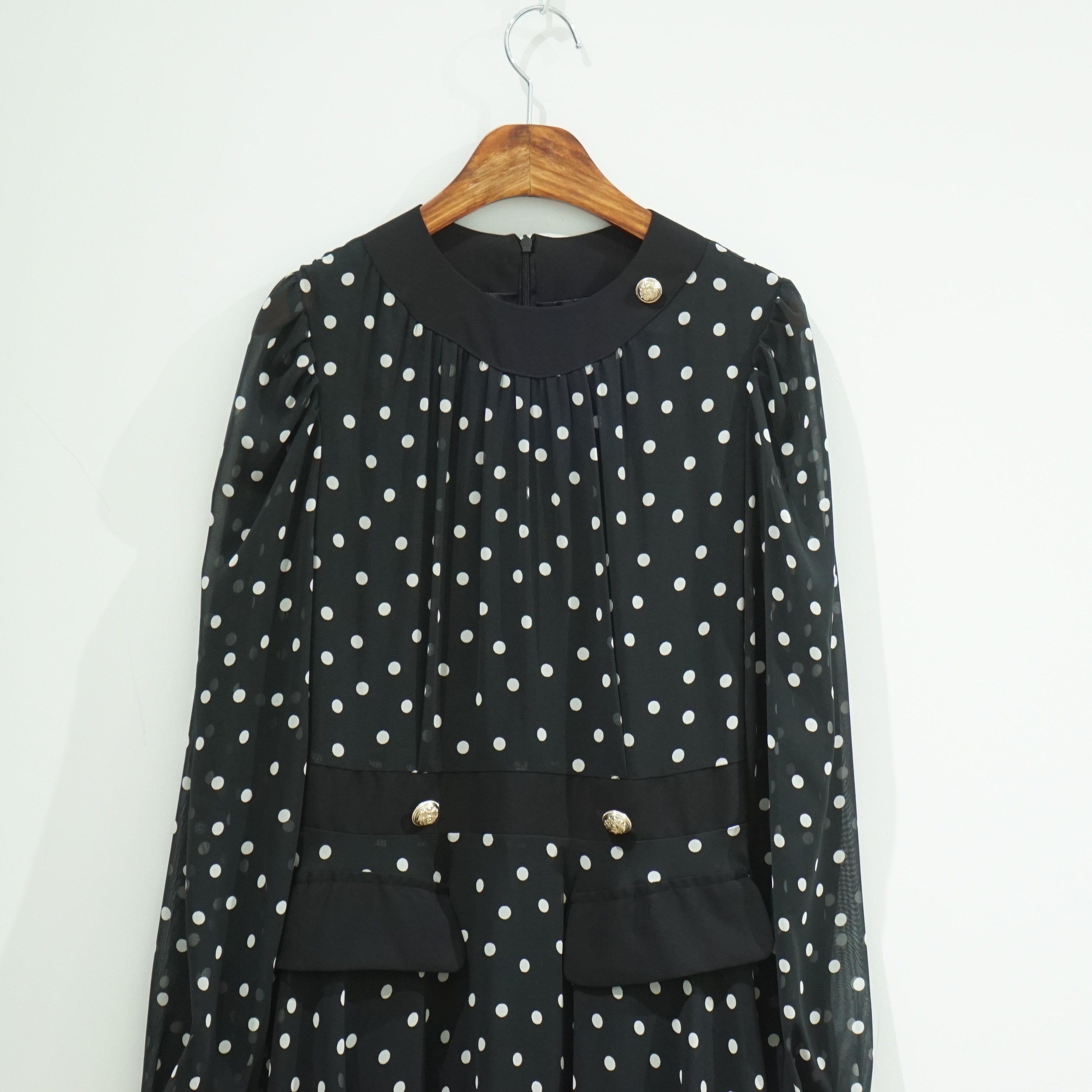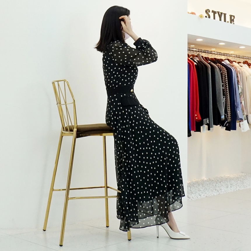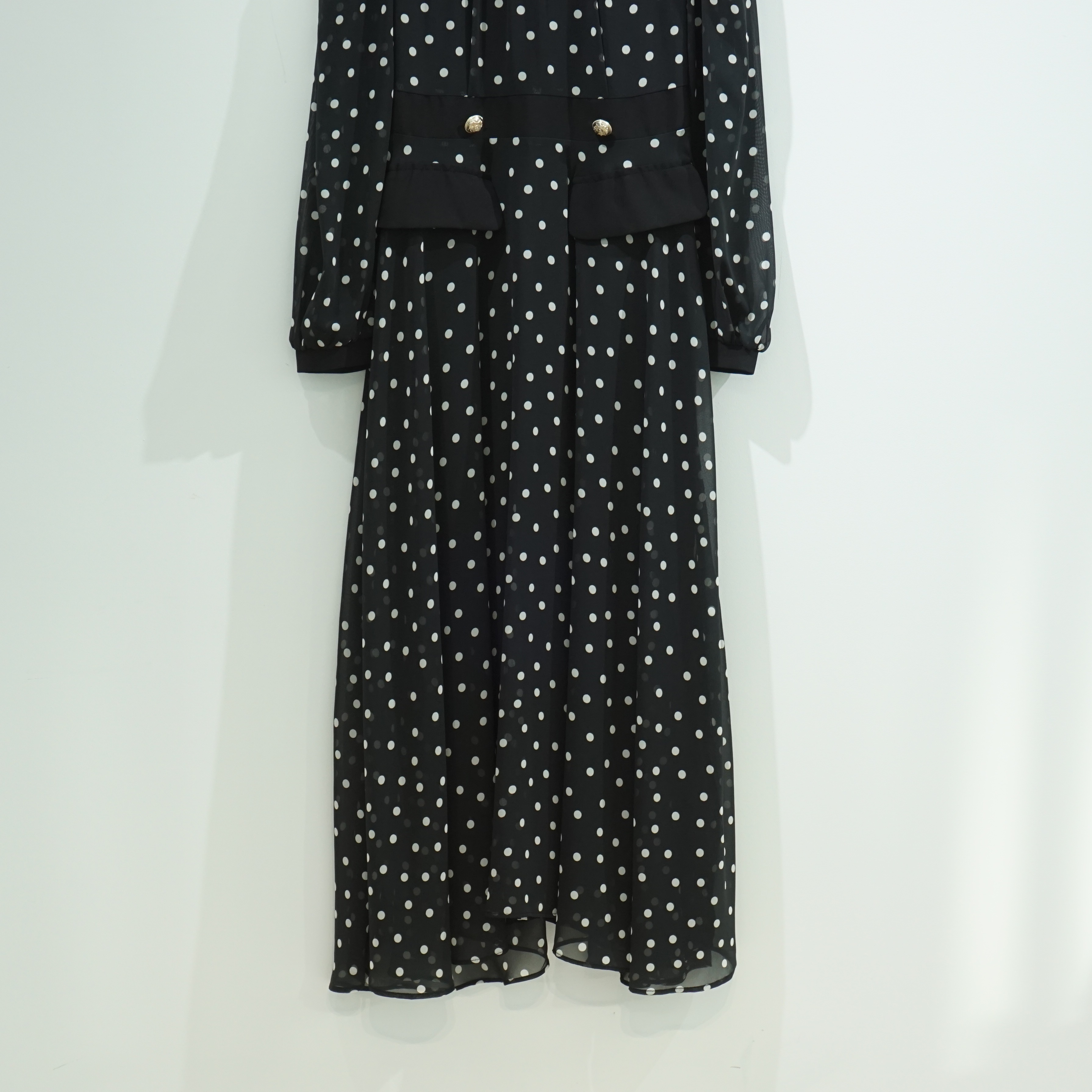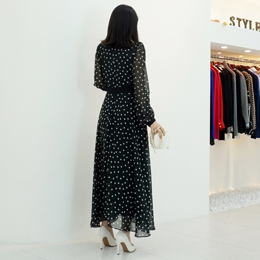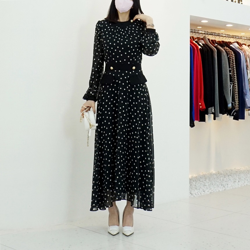 도트 쉬폰 시스루 긴팔 롱 맥시 원피스 출근룩