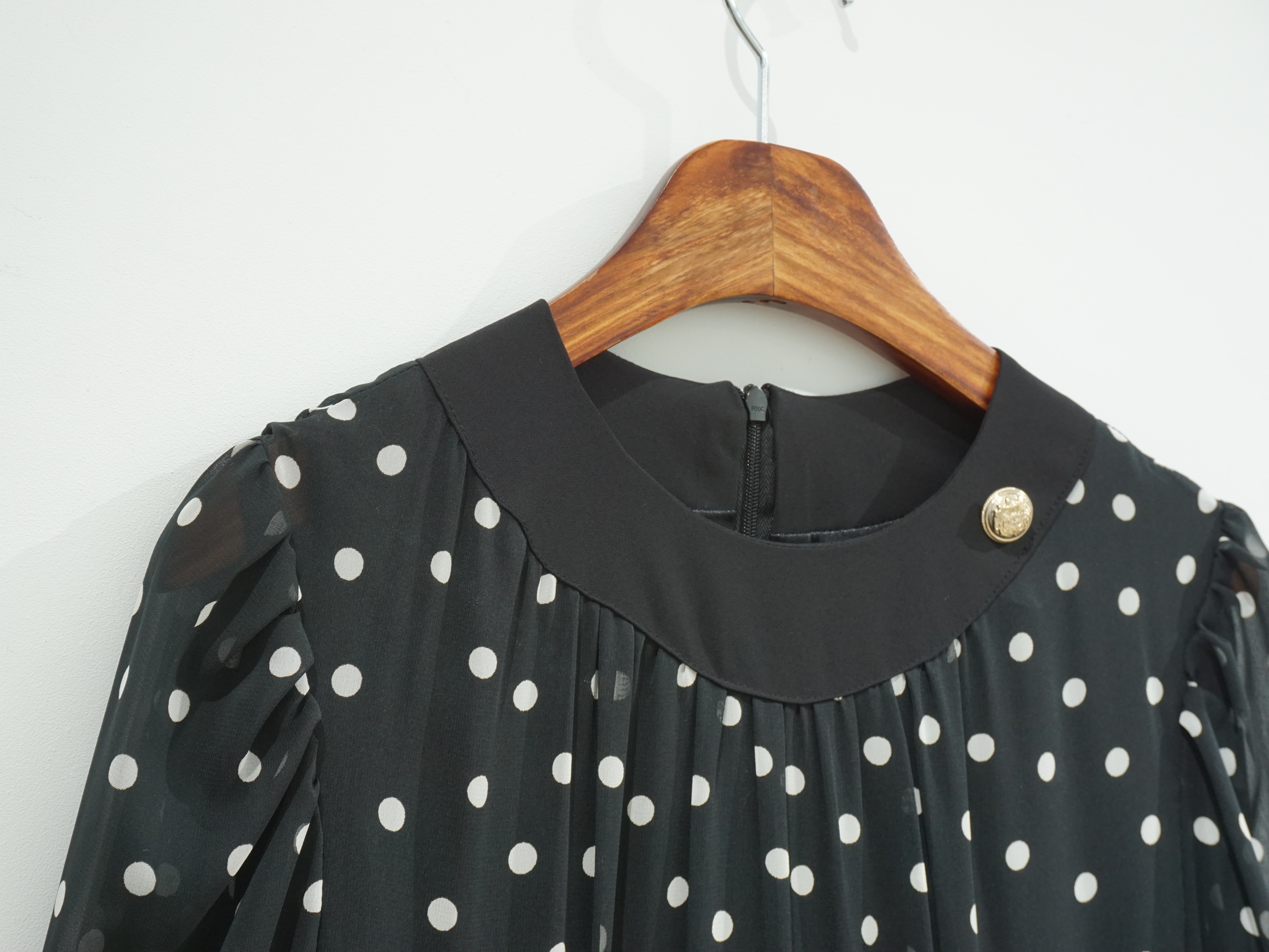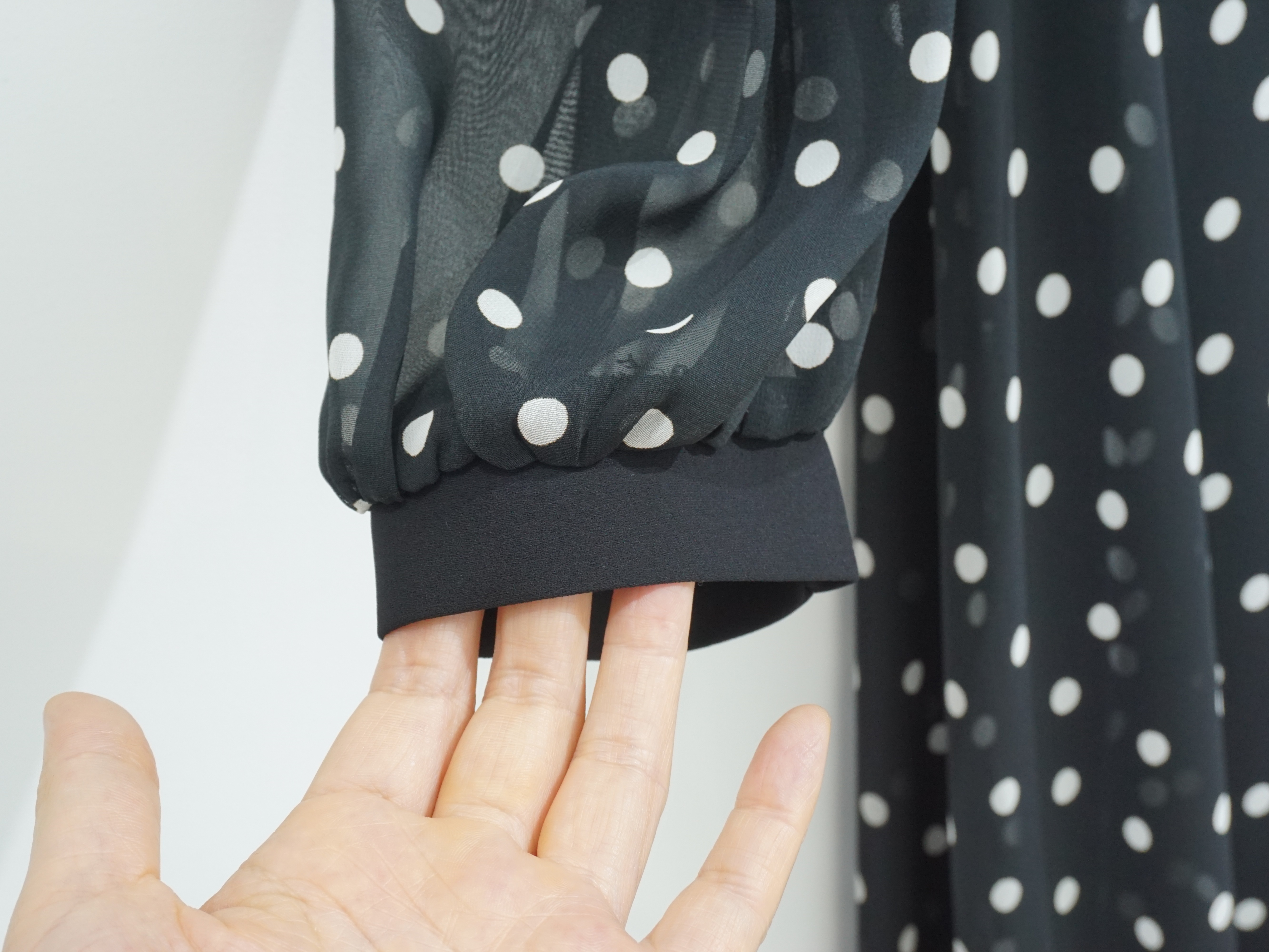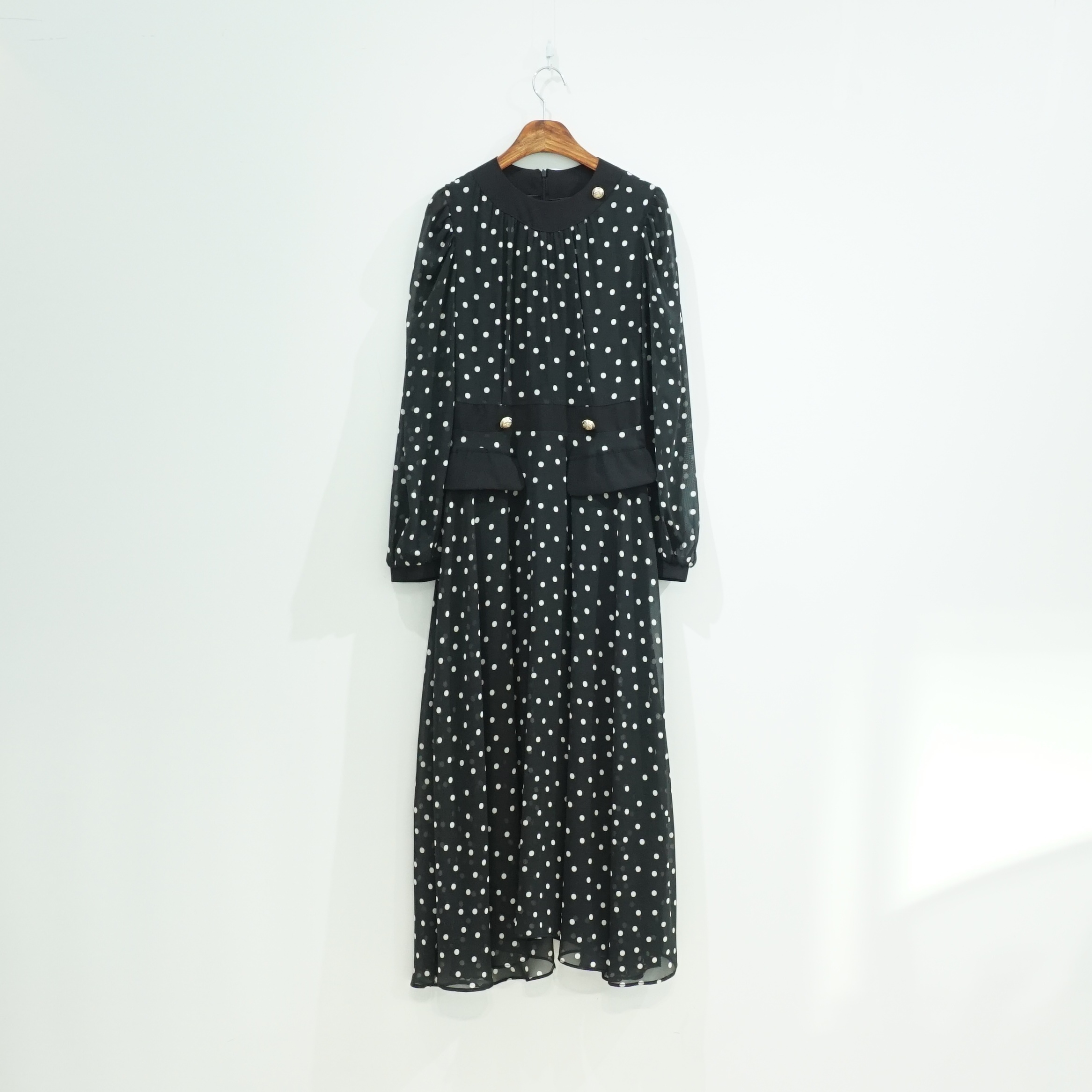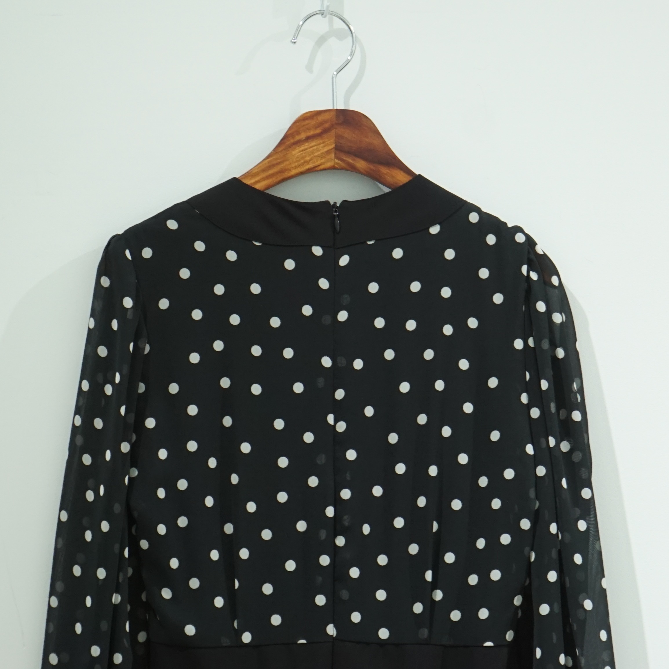도트 쉬폰 시스루 긴팔 롱 맥시 원피스 출근룩