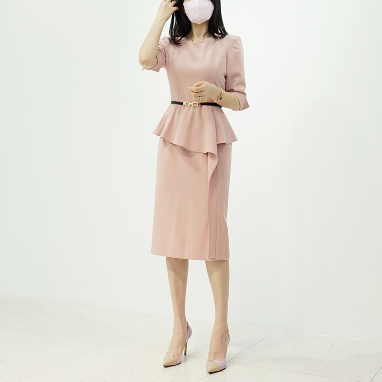 H라인 미디 정장원피스 하객코디