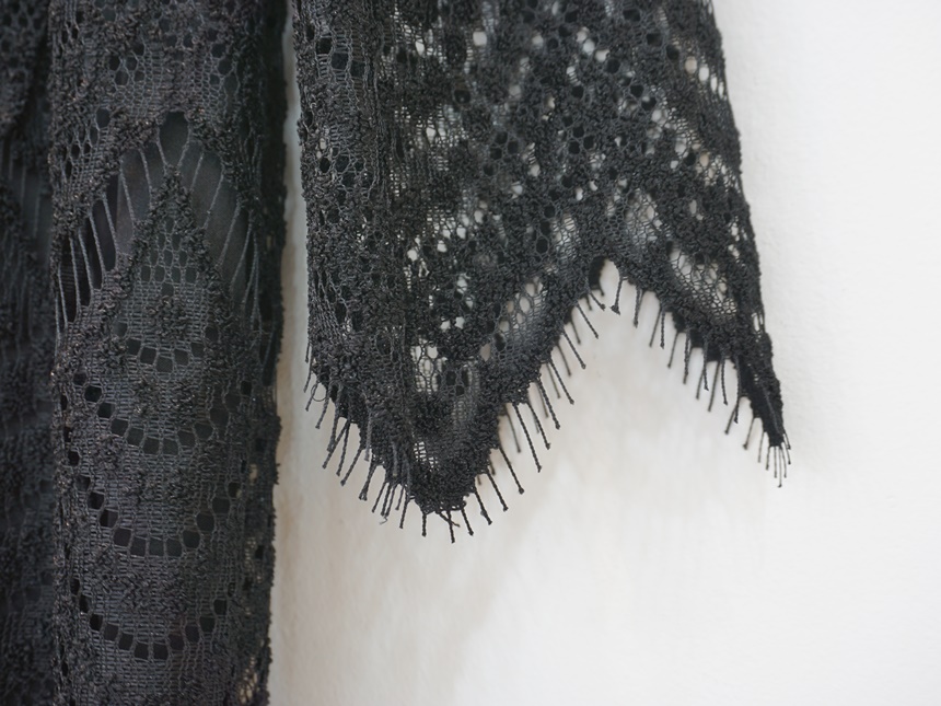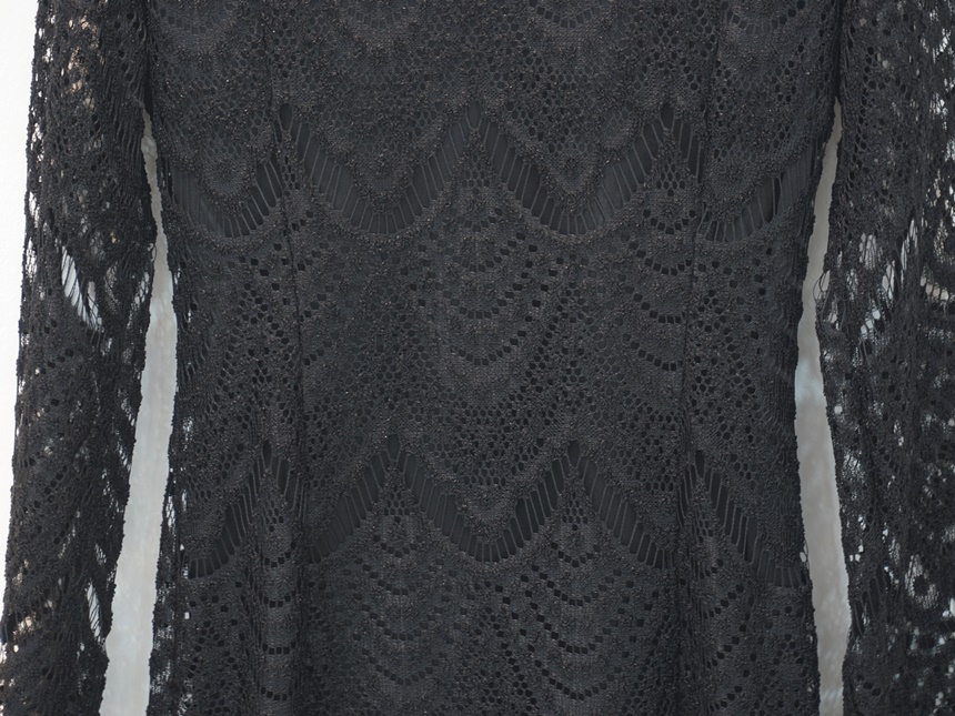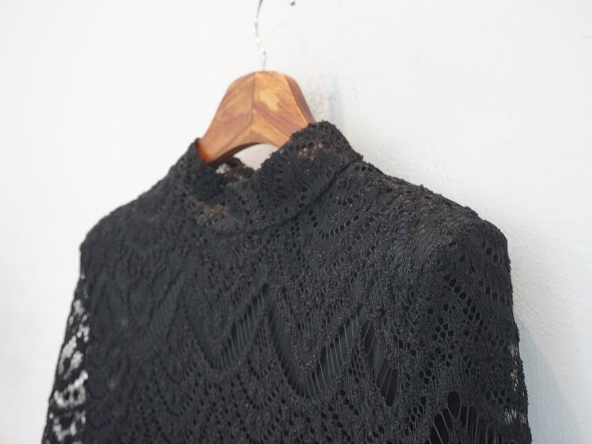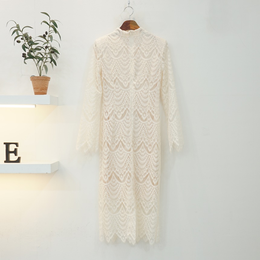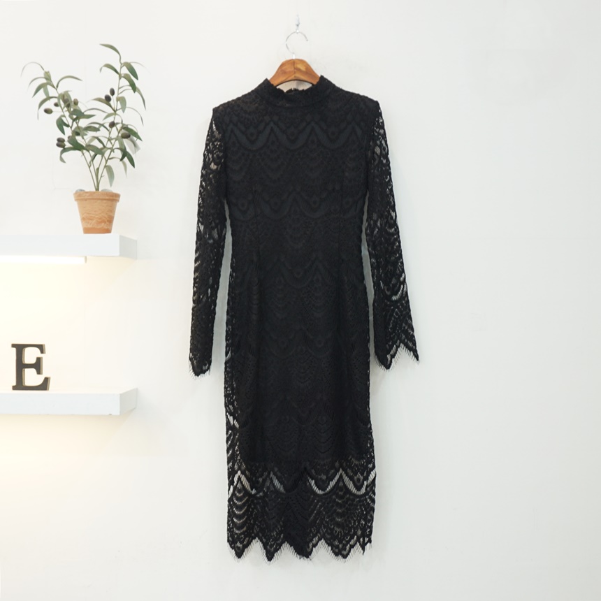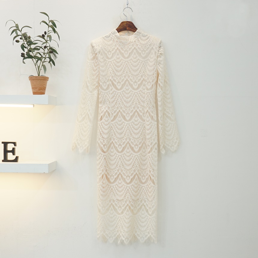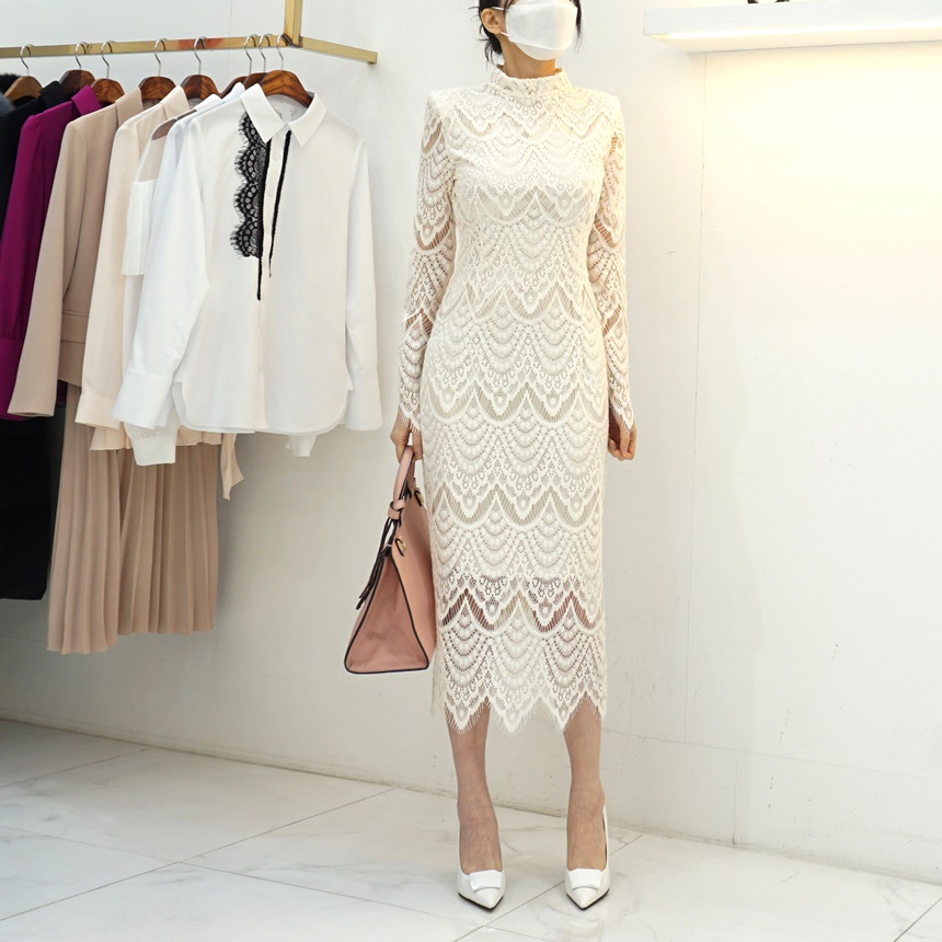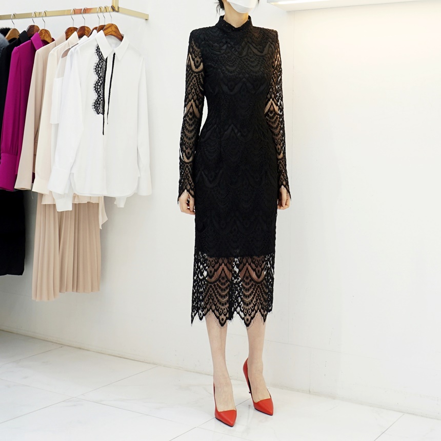 시스루 레이스 반하이넥 H라인 슬림 원피스