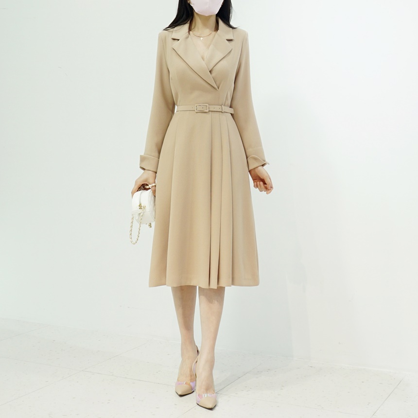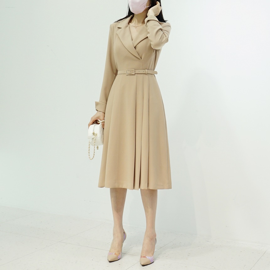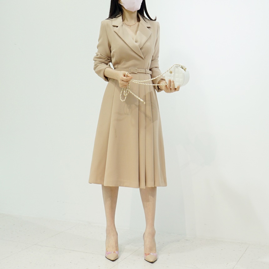벨트 set 테일러드 A라인 플리츠 원피스