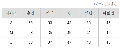 <사이즈> S, M, L