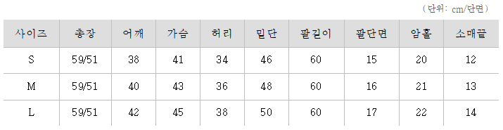 < 자켓 사이즈표 >