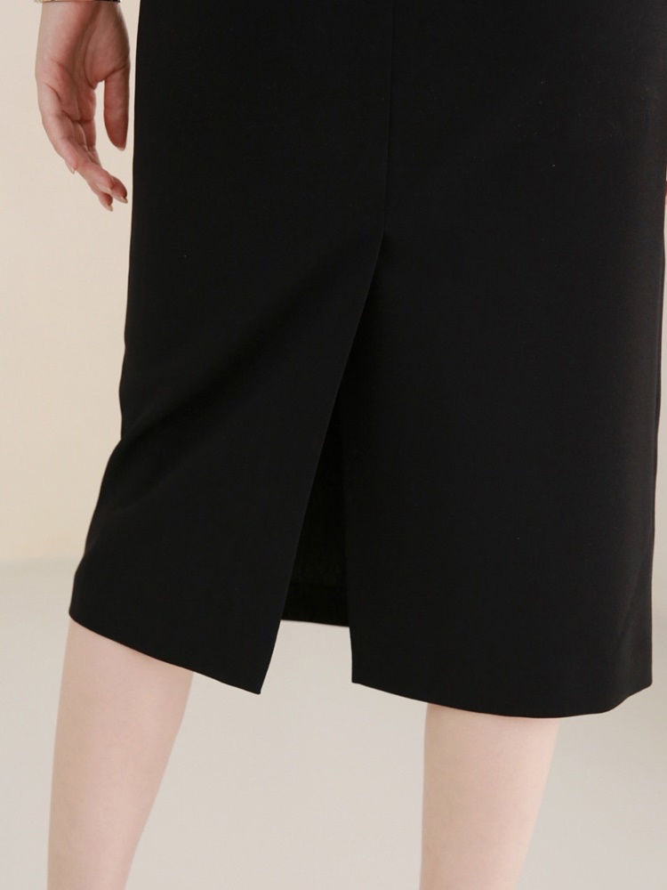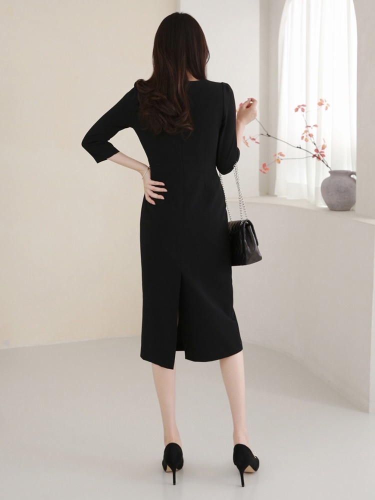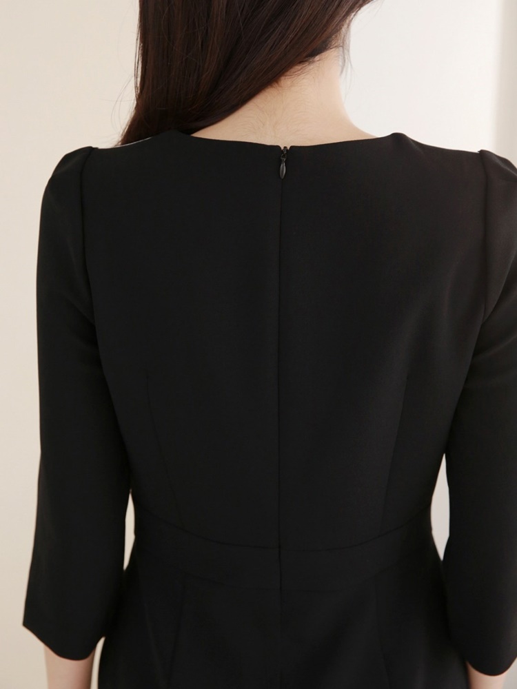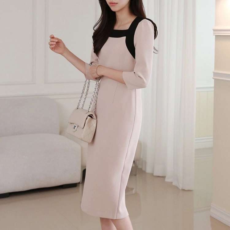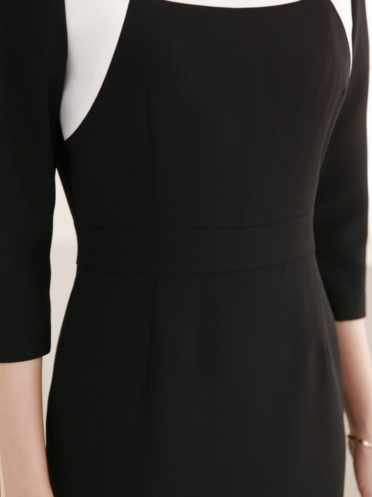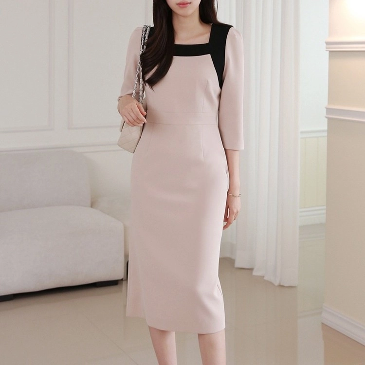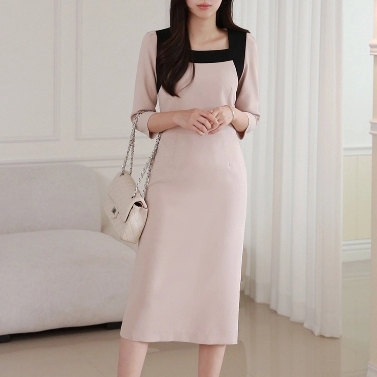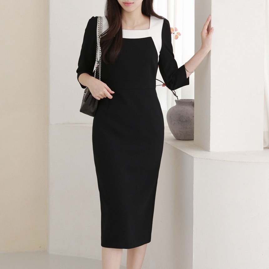 하객원피스 배색 스퀘어넥 H라인 정장 원피스