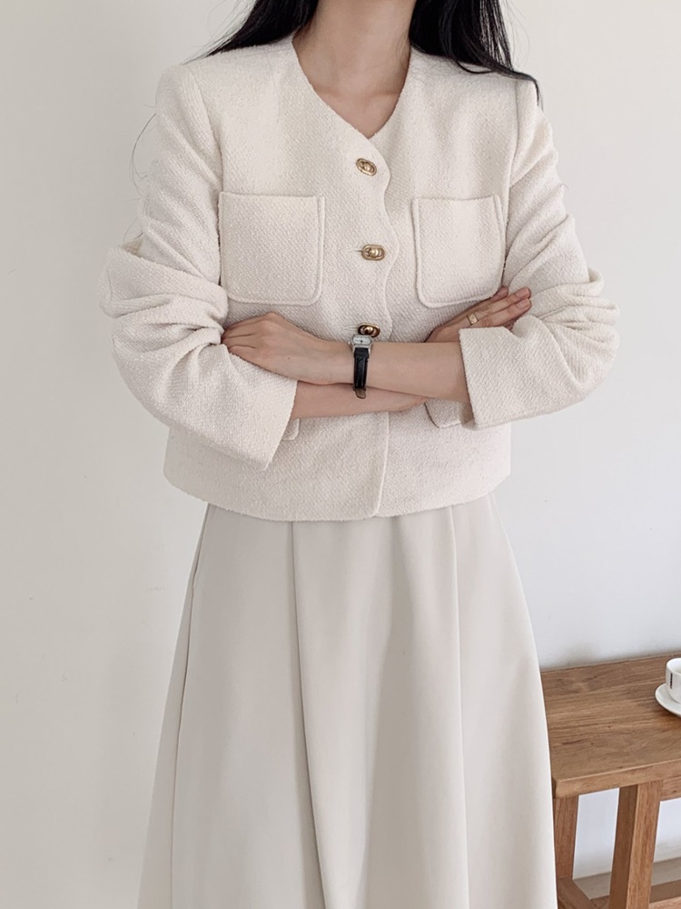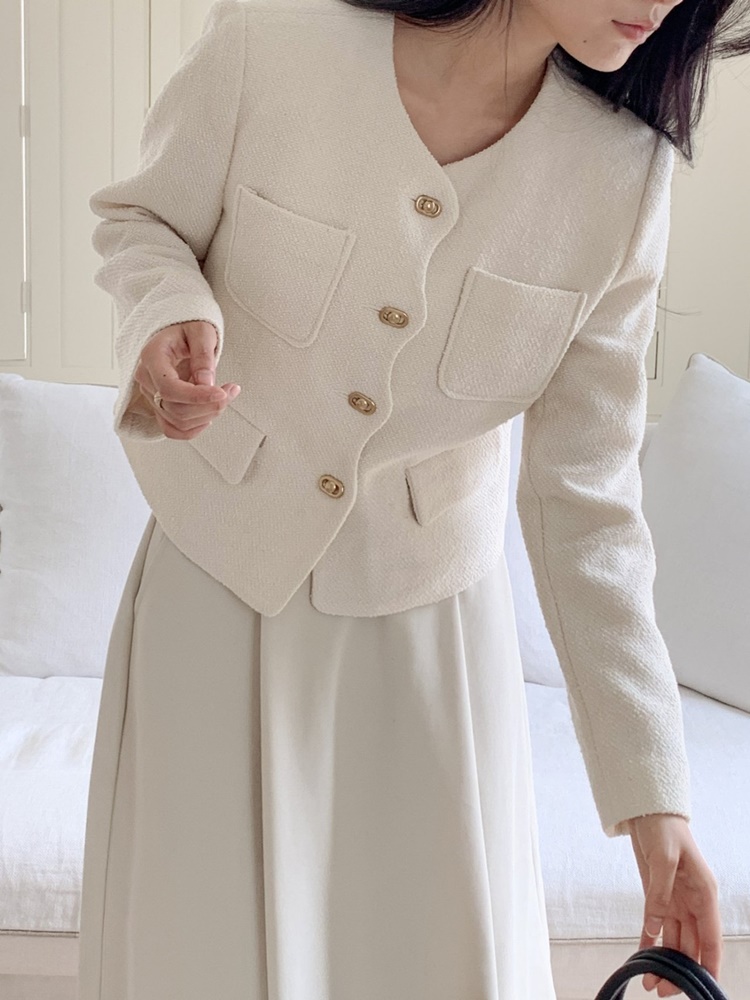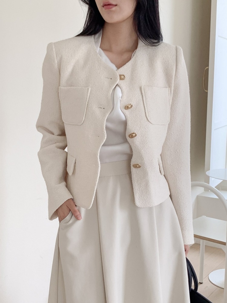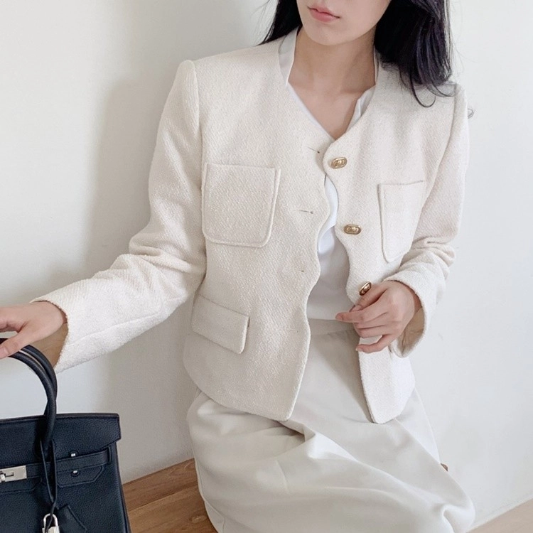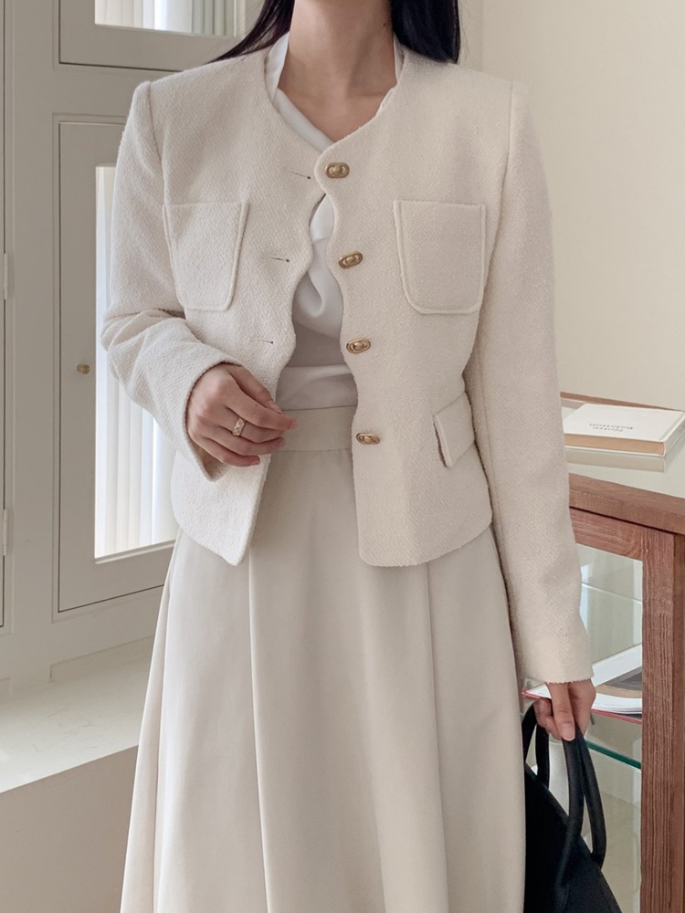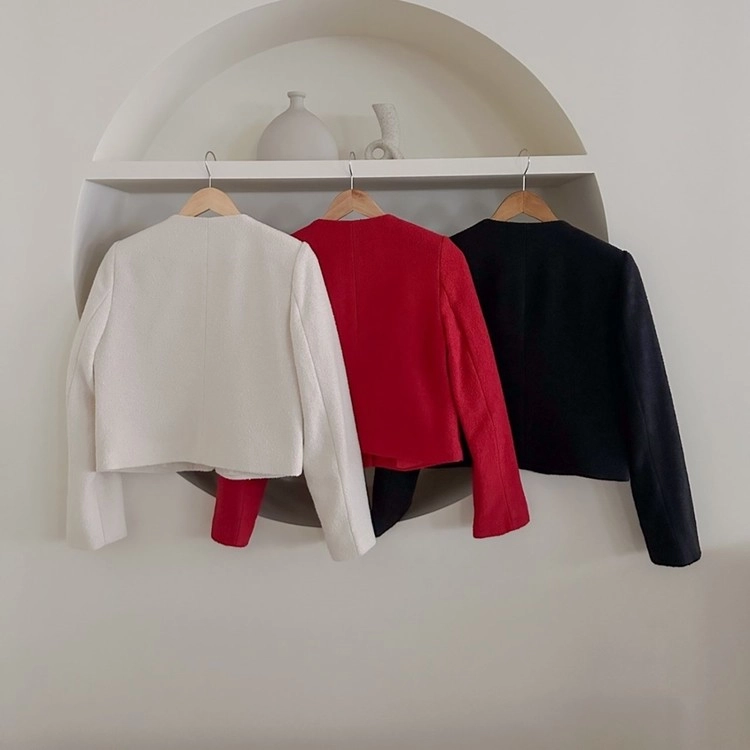 여성 노카라 숏 재킷 봄 가을 하객룩 출근룩