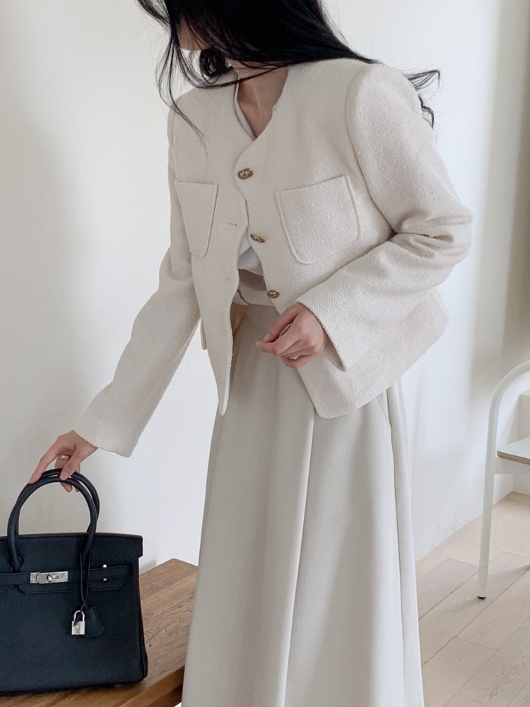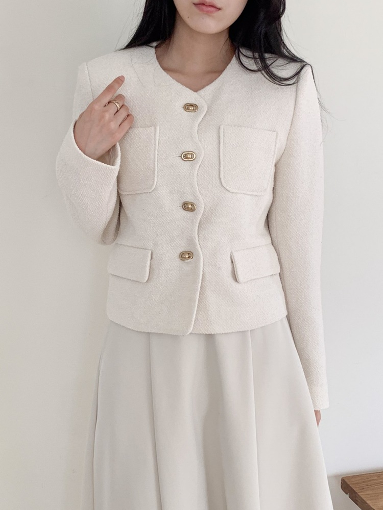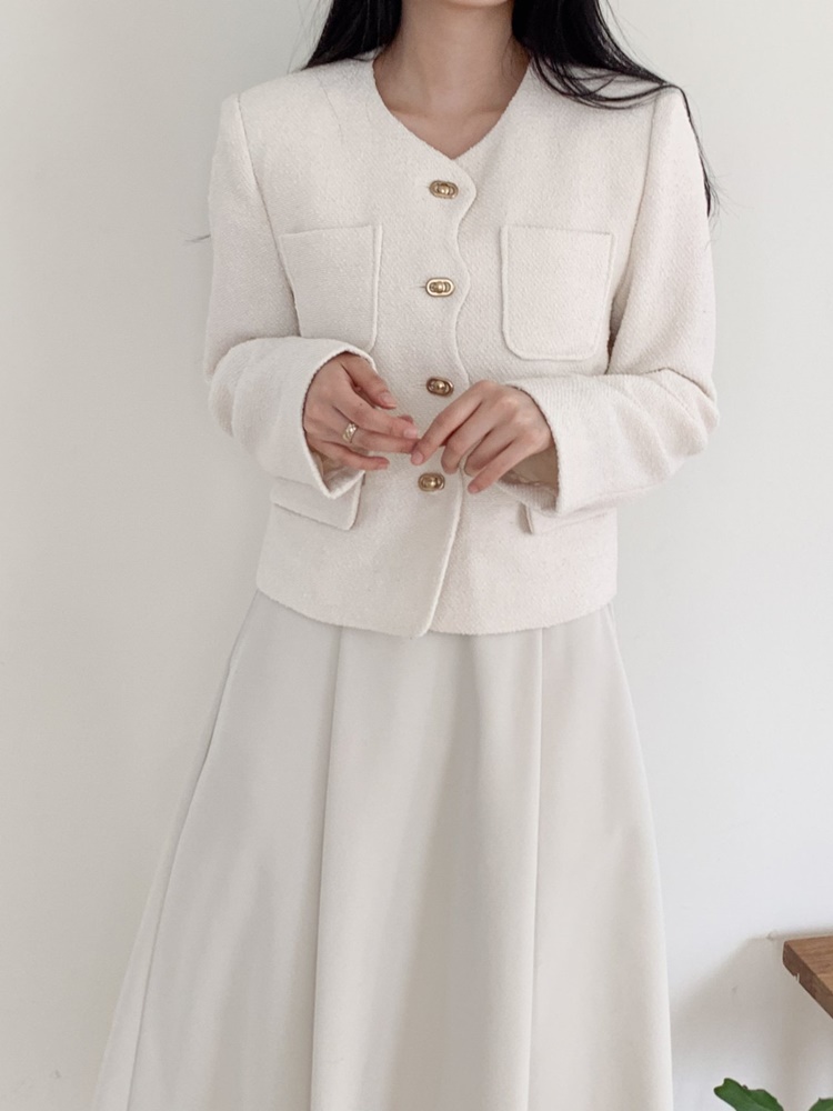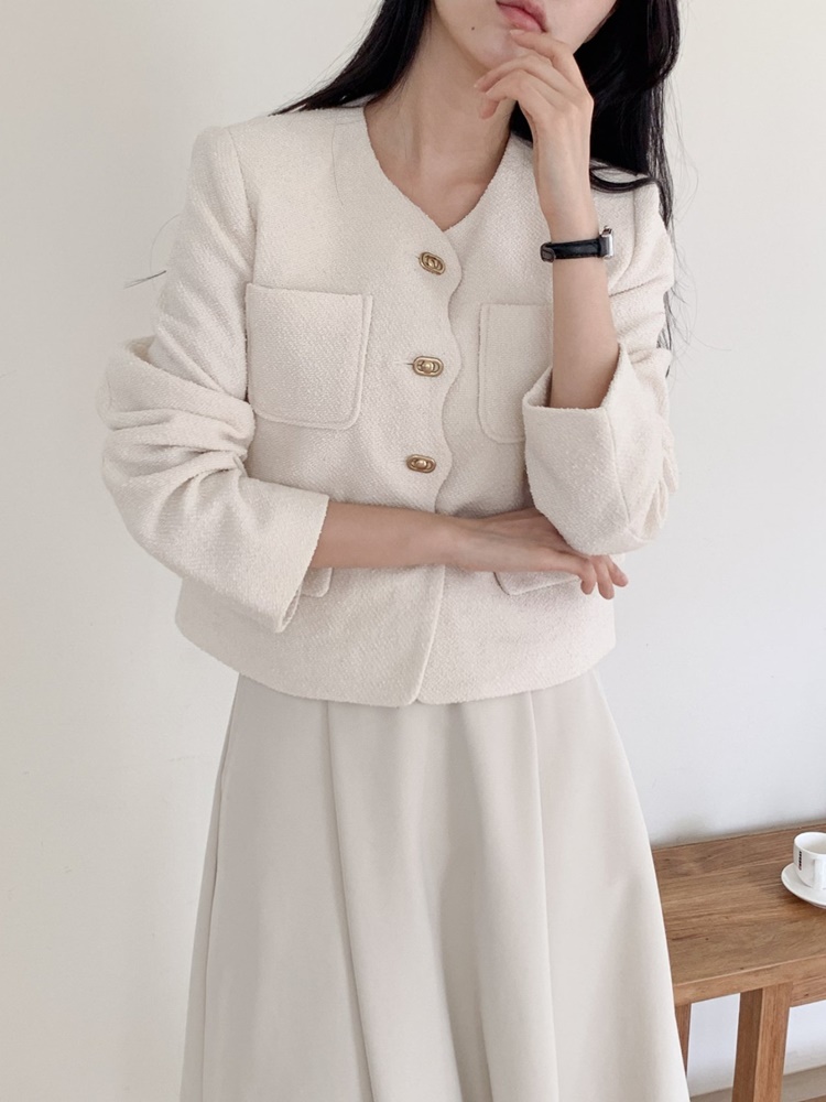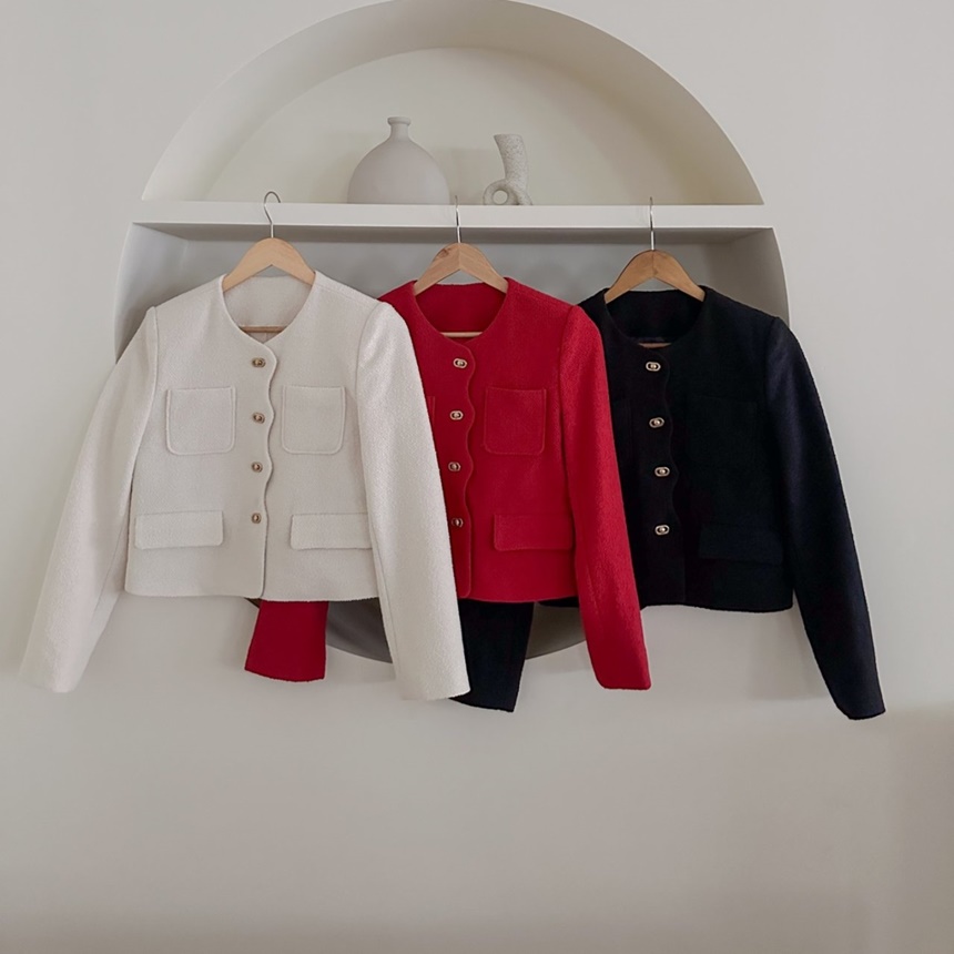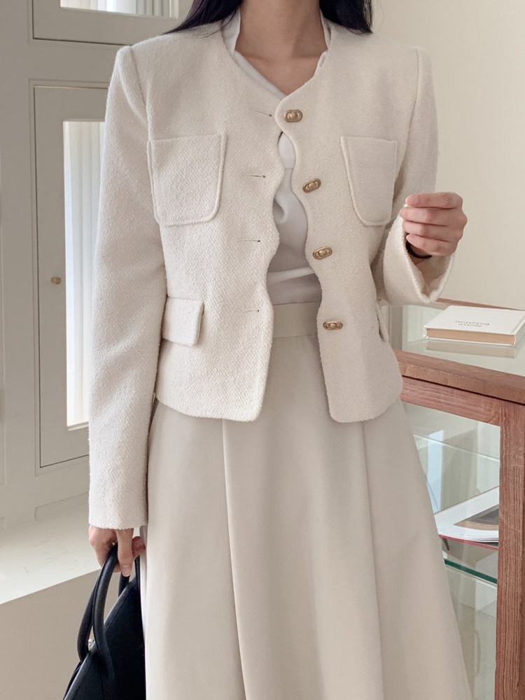 여성 노카라 숏 재킷 봄 가을 하객룩 출근룩