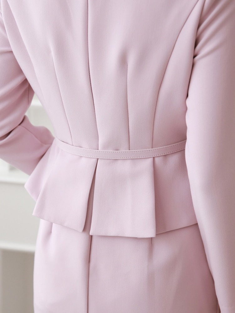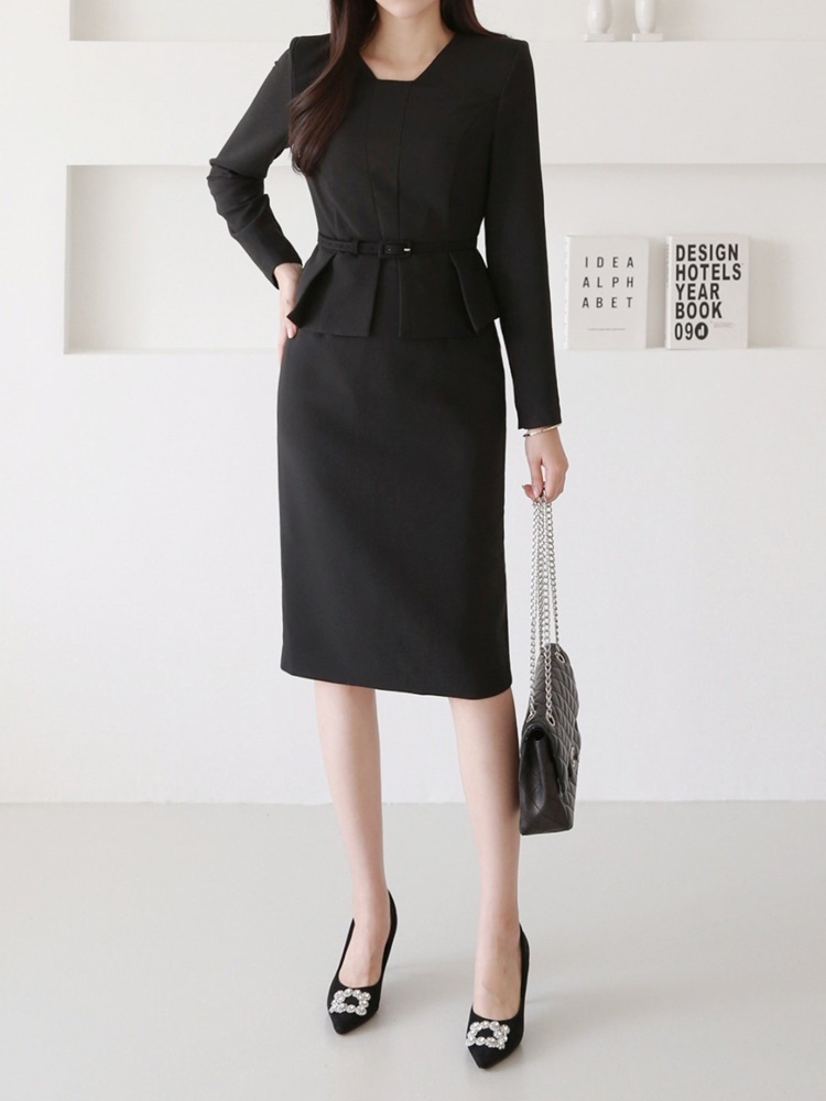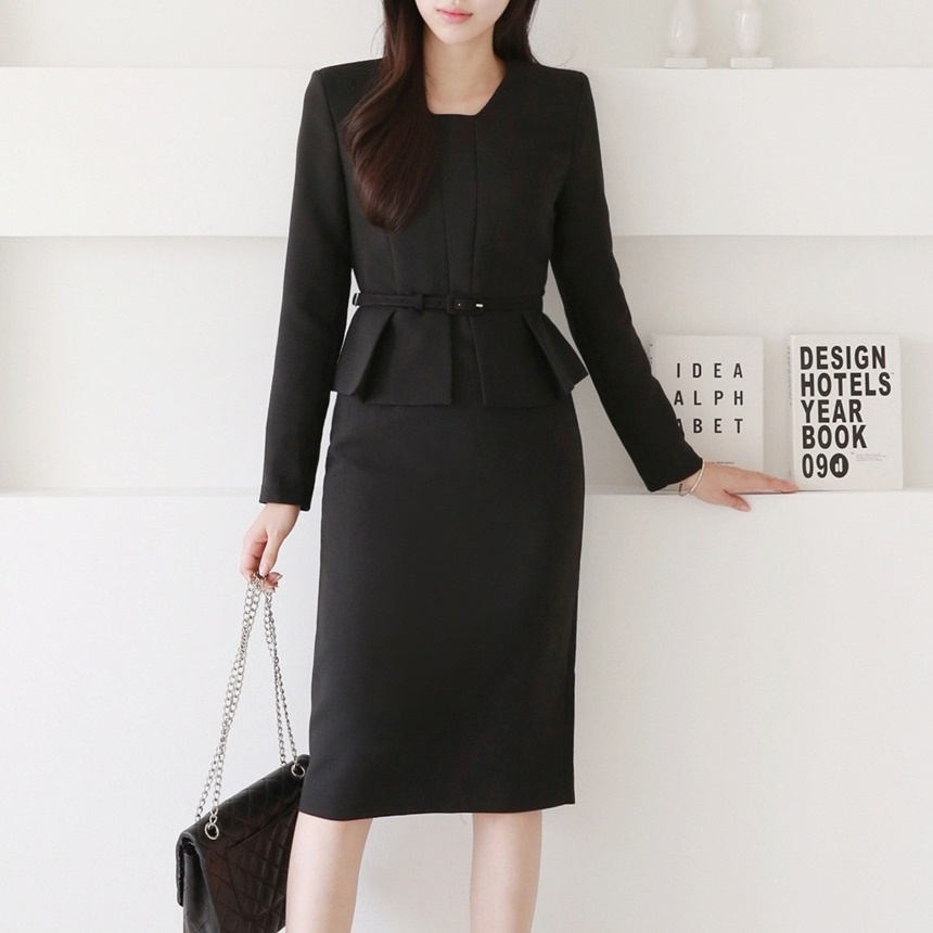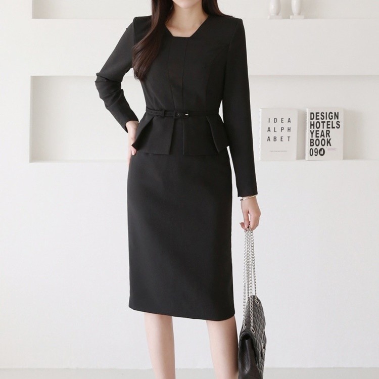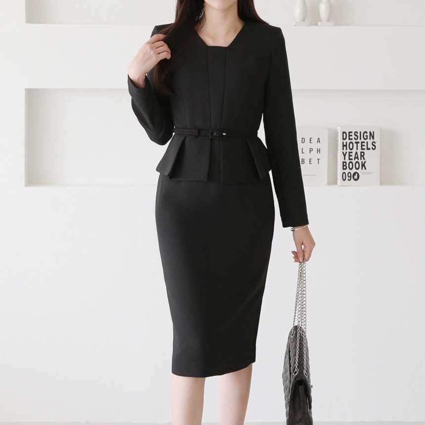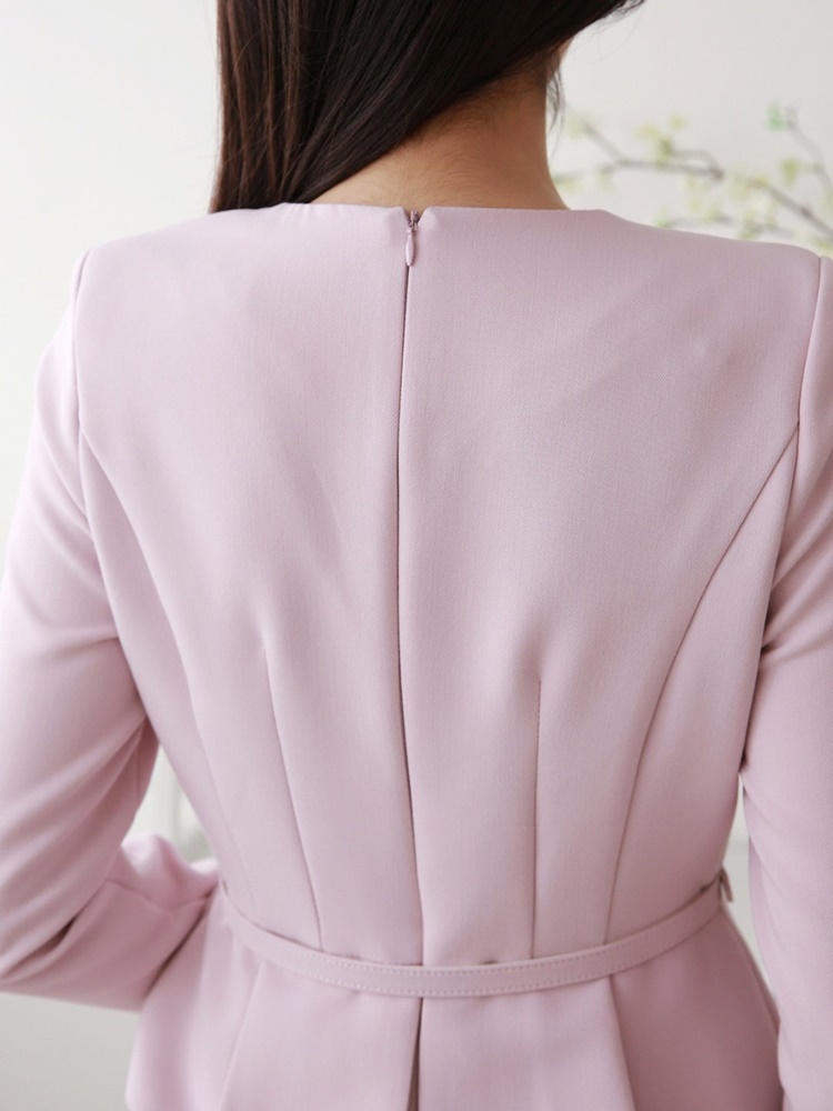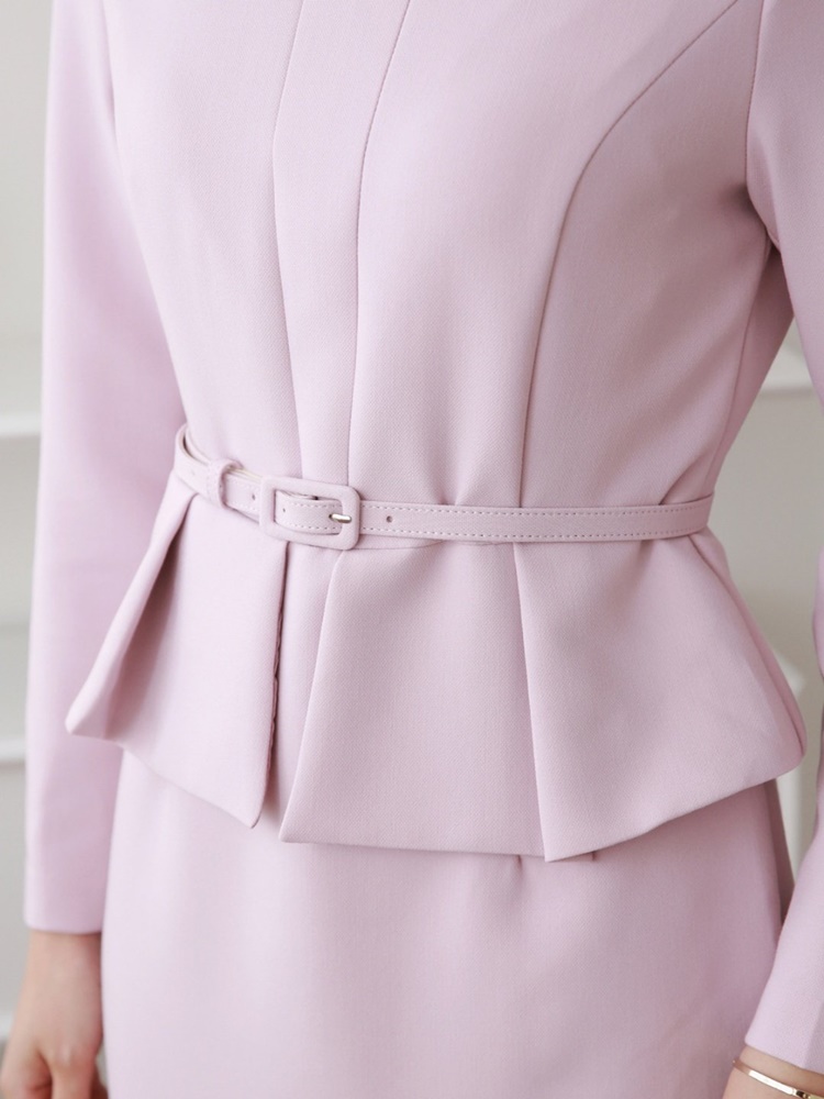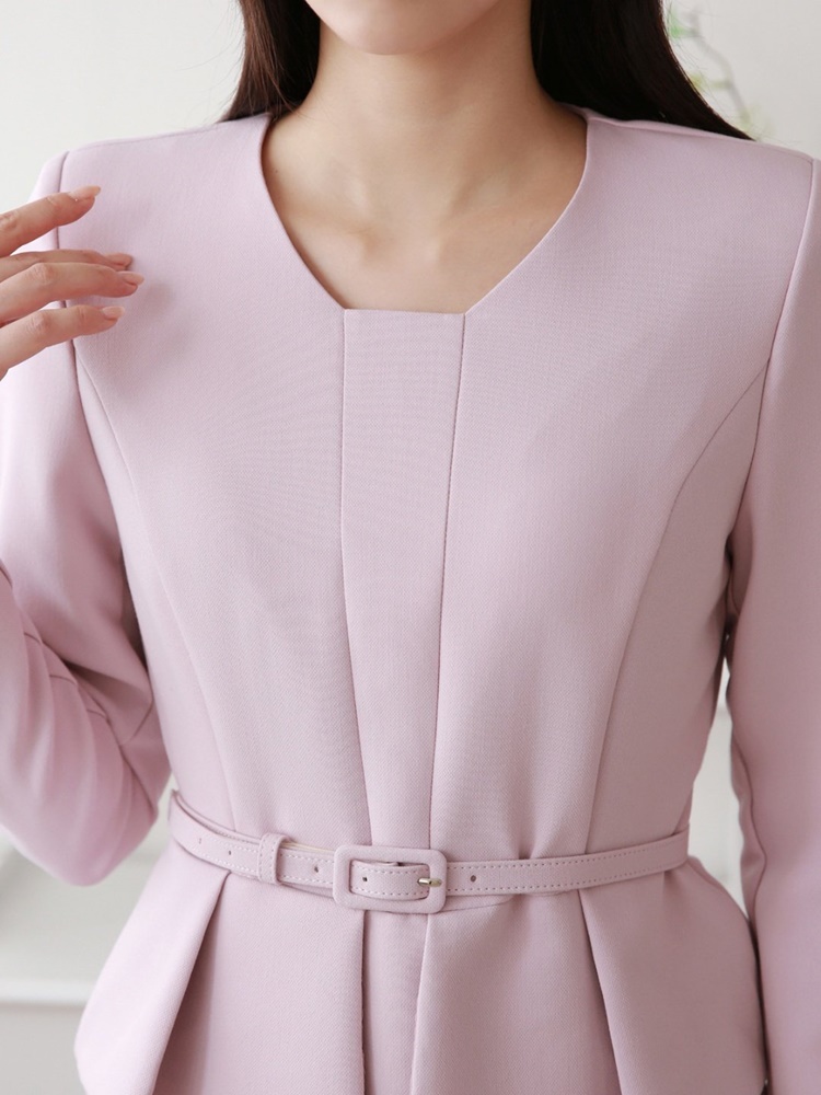 벨티드 핀턱 페플럼 H라인 미디 정장 원피스