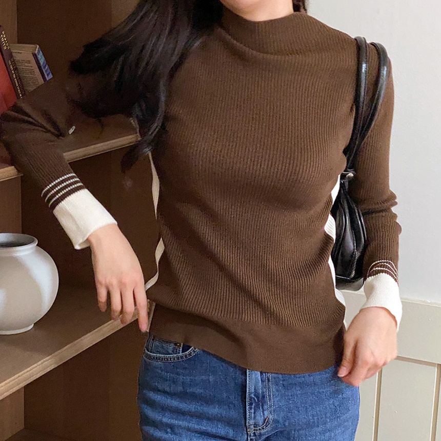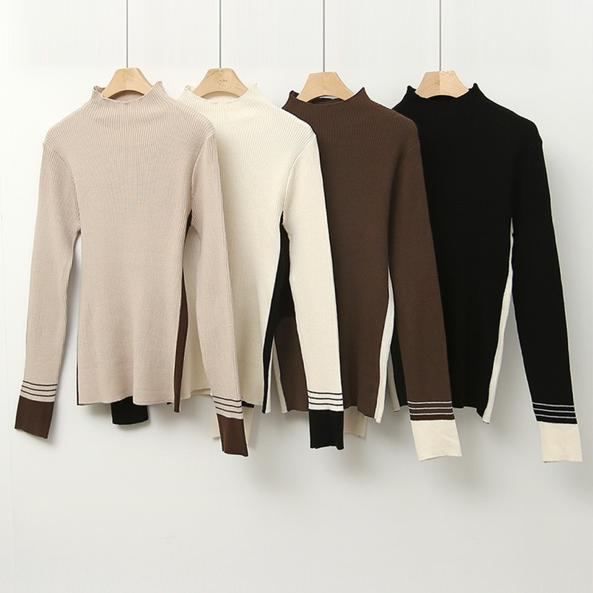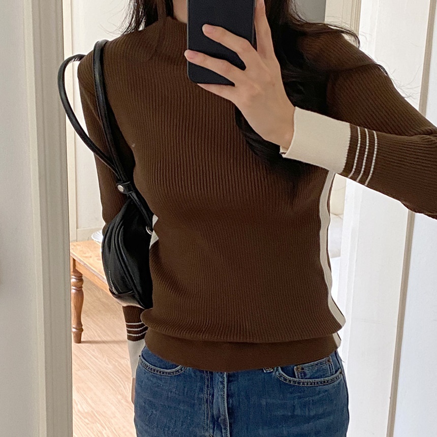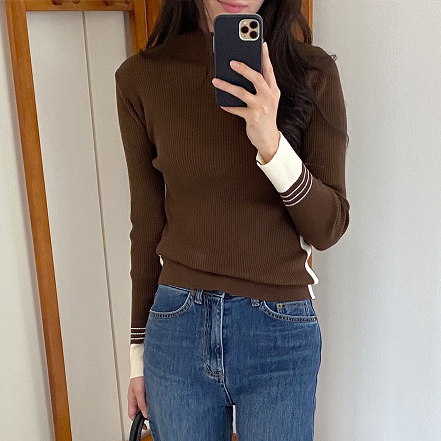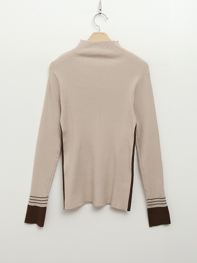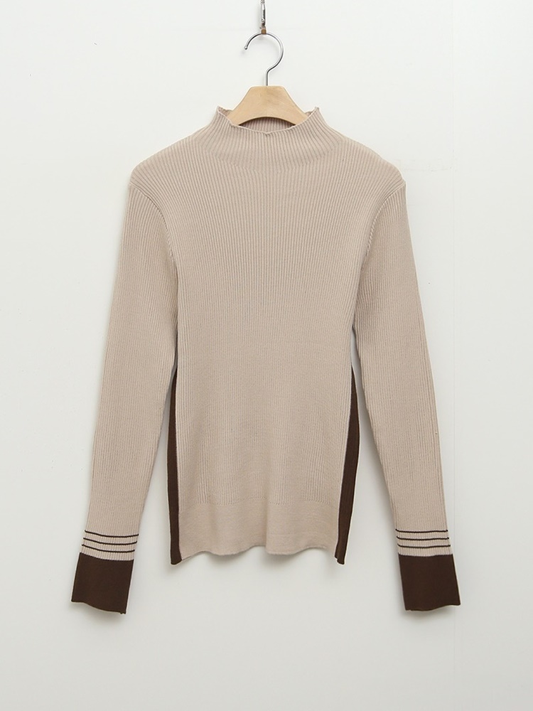 배색 포인트 긴팔 니트 티셔츠 출근패션
