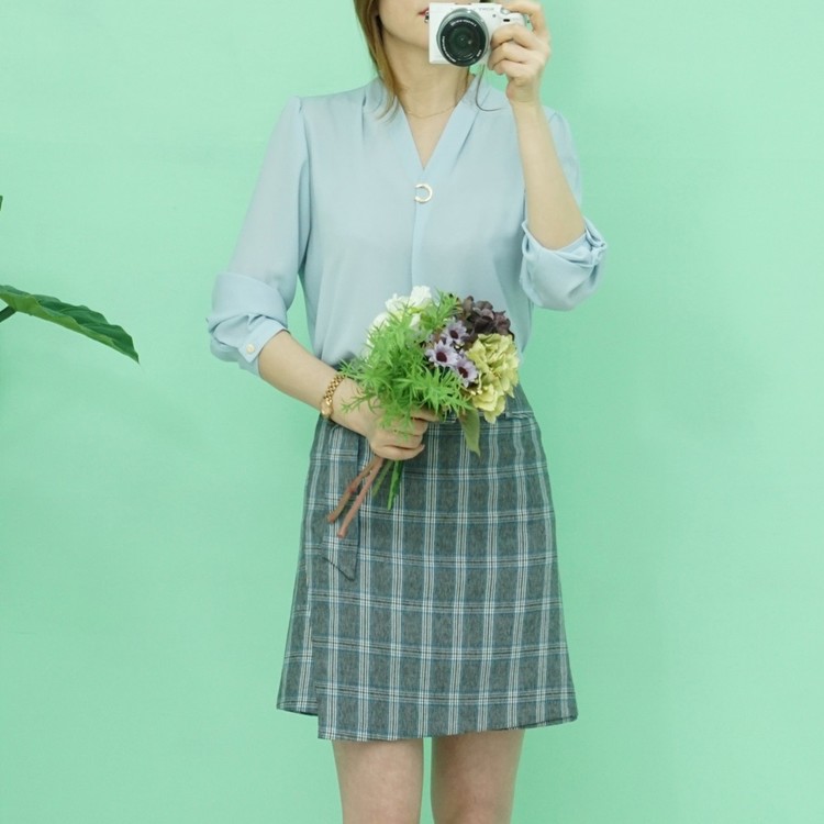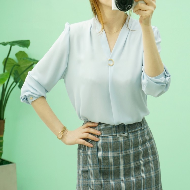 < 골드버클 브이넥 블라우스 5color >