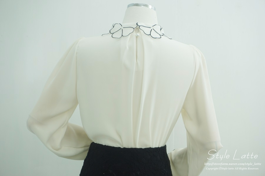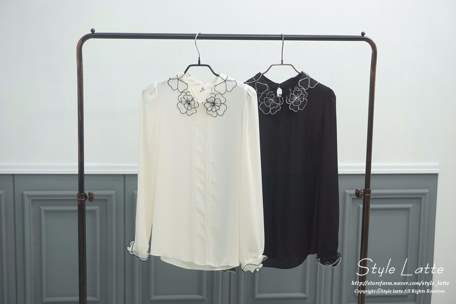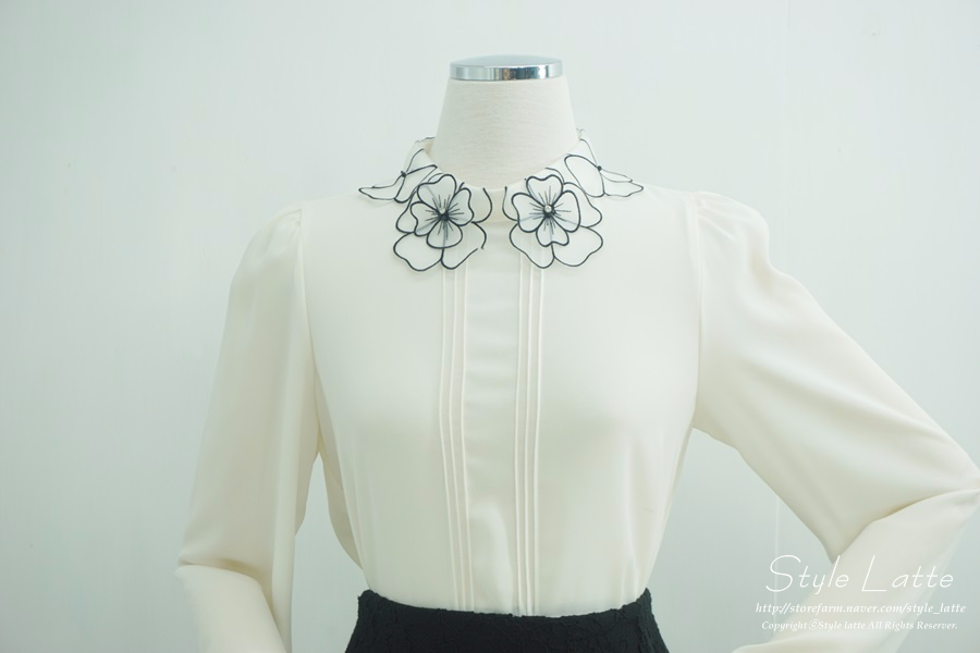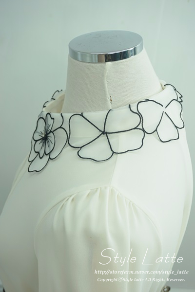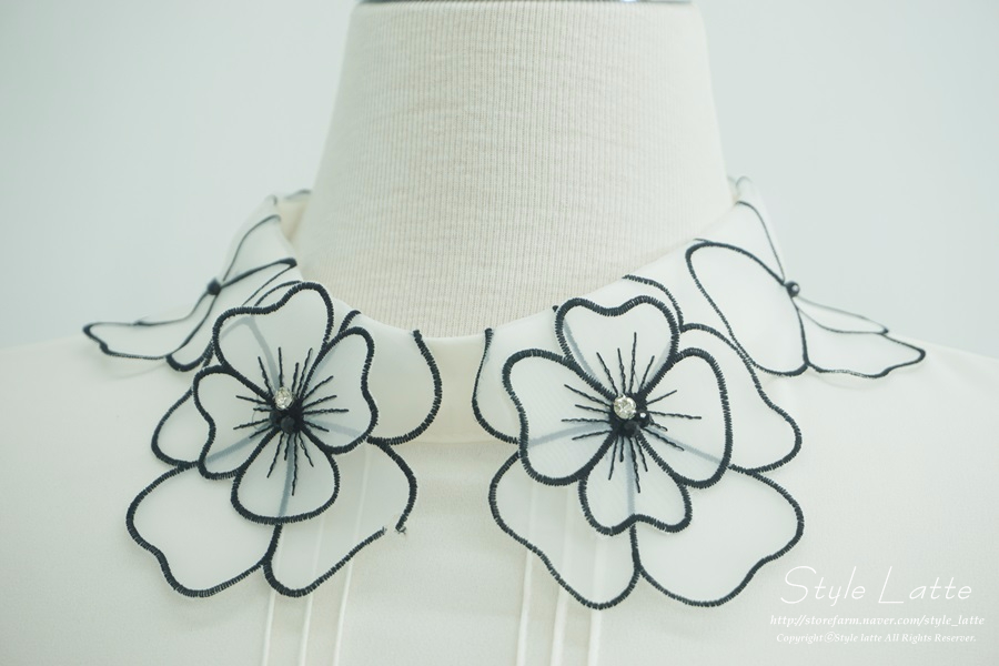 카라에 꽃모양 포인트를 주어
