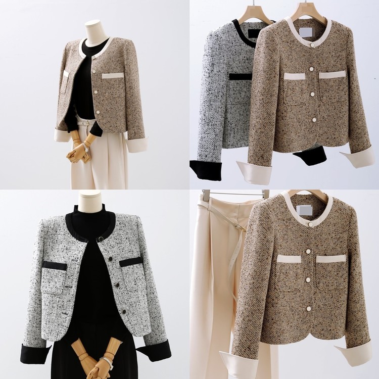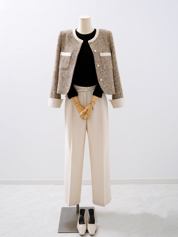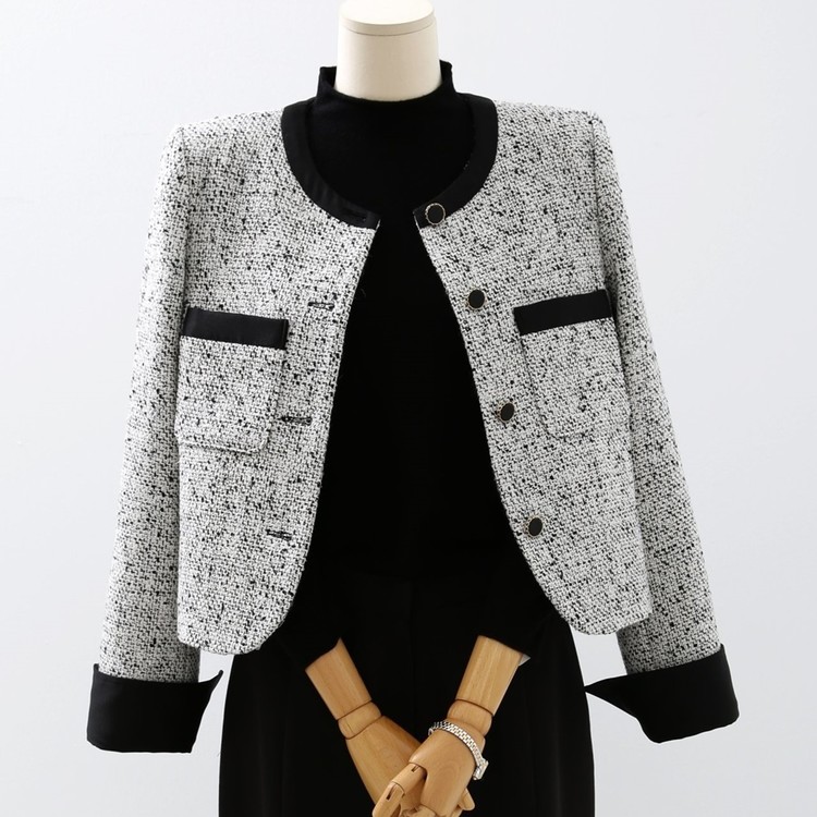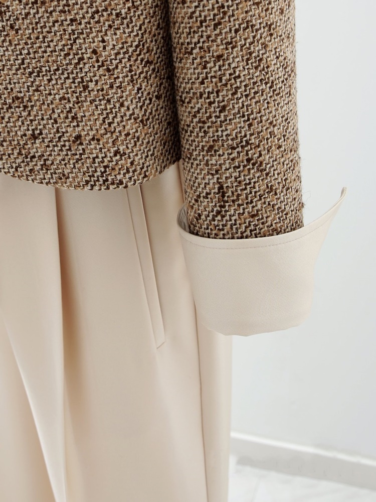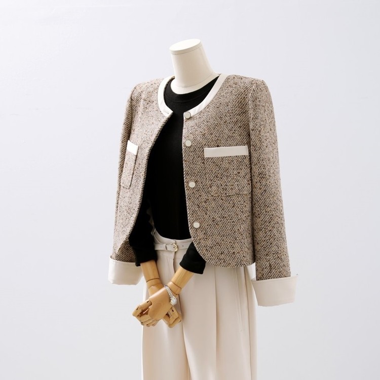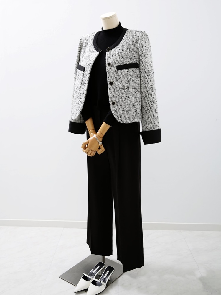 고급스러운 배색 트위드 자켓 하객룩