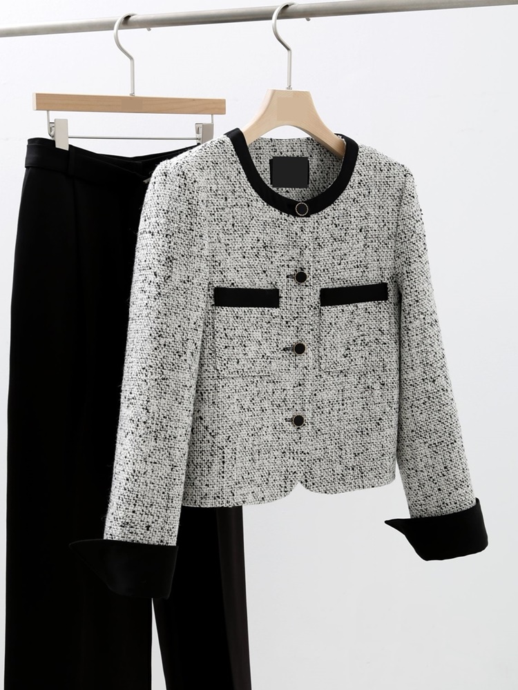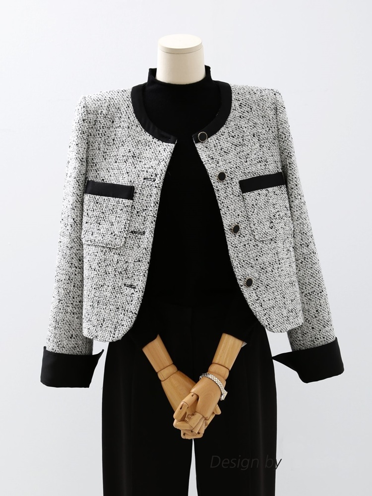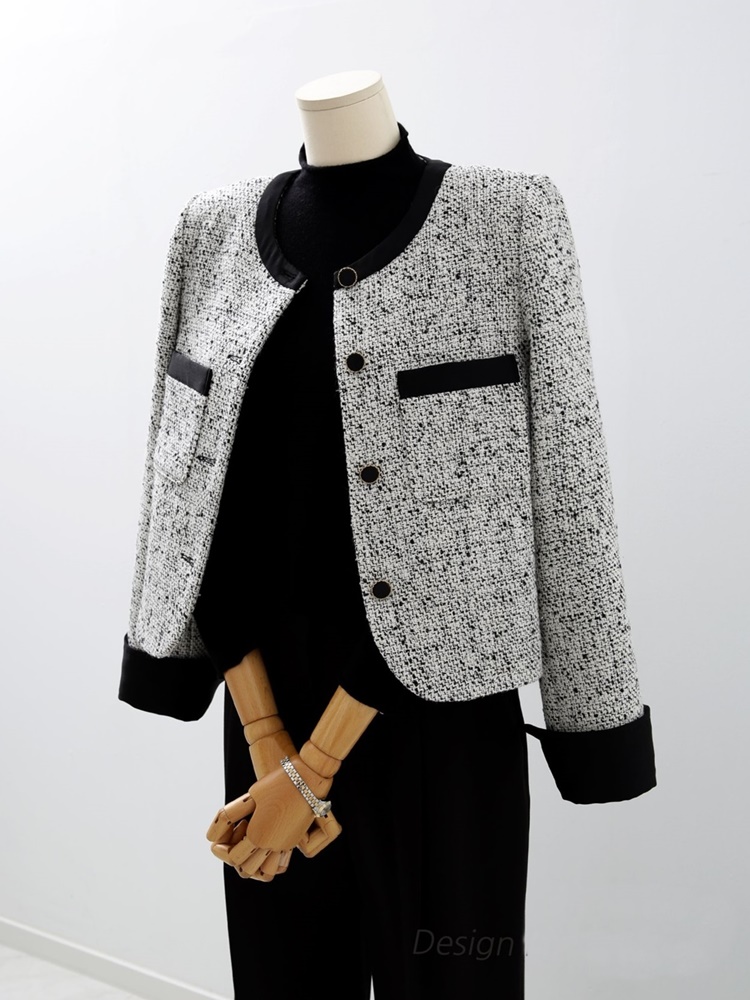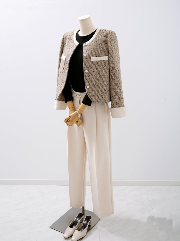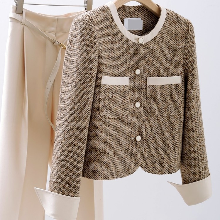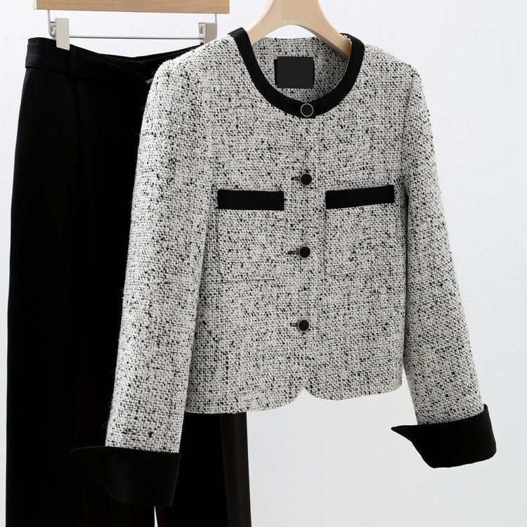 고급스러운 배색 트위드 자켓 하객룩