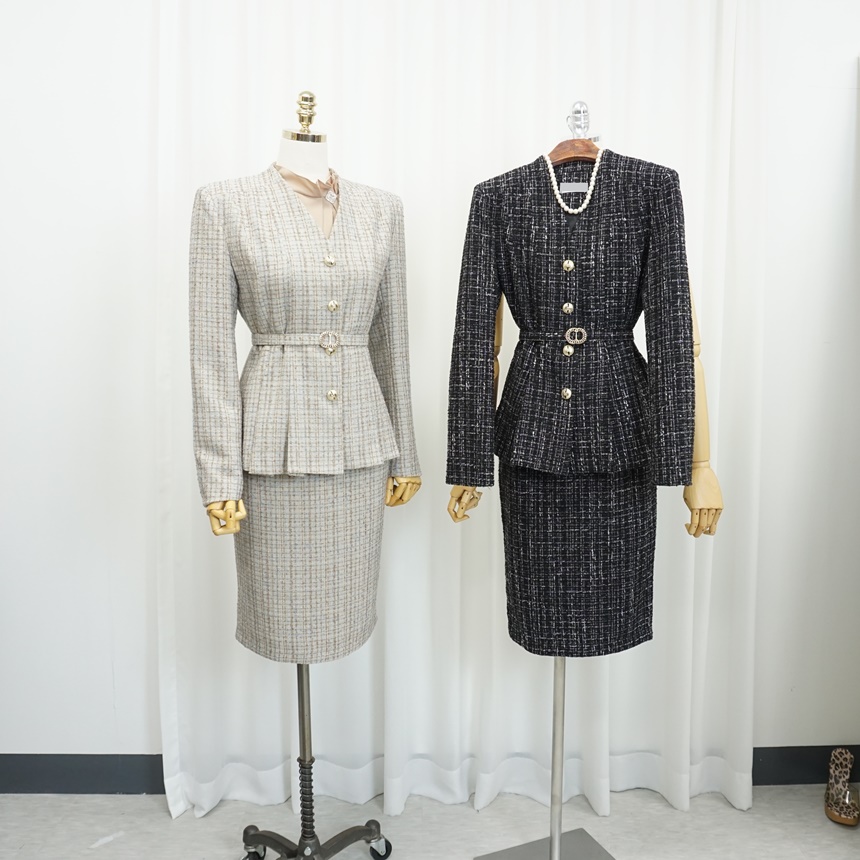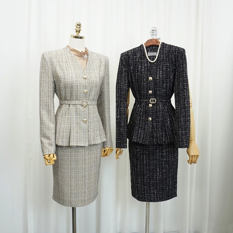 벨티드 트위드 치마정장세트 하객 상견례룩