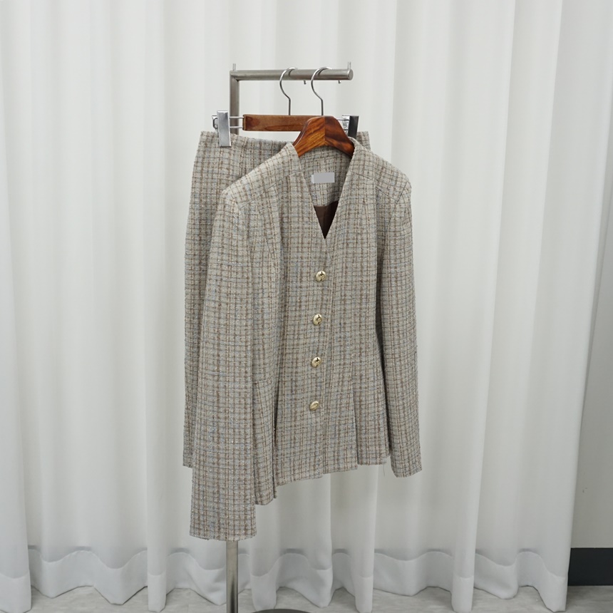 체크 페플럼 자켓 스커트 투피스 수트셋업