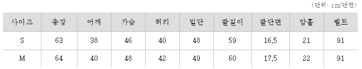 사이즈는 S, M 으로