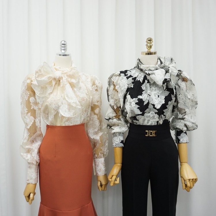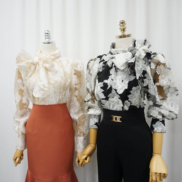 하이넥 정장 브라우스 오피스룩 직장인 코디