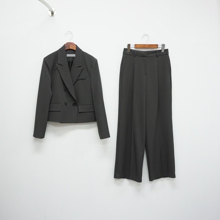 더블자켓 스판 슬랙스 투피스 수트 셋업 출근룩