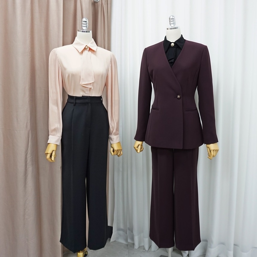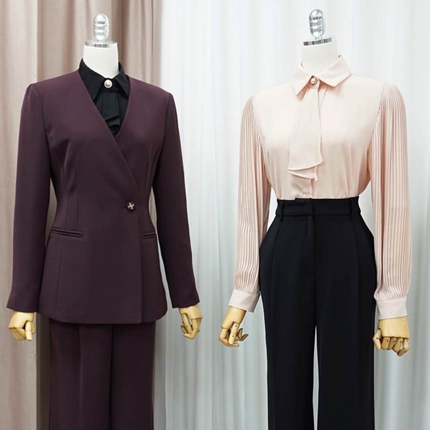 고급스러운 타이 정장 브라우스 오피스룩 코디