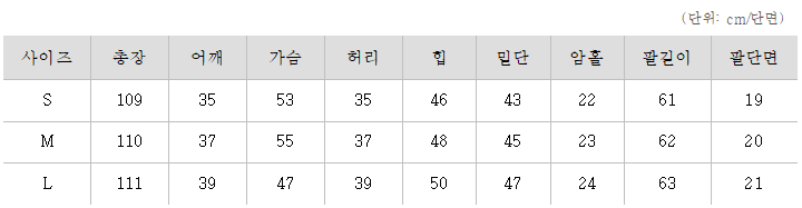<사이즈> S, M, L