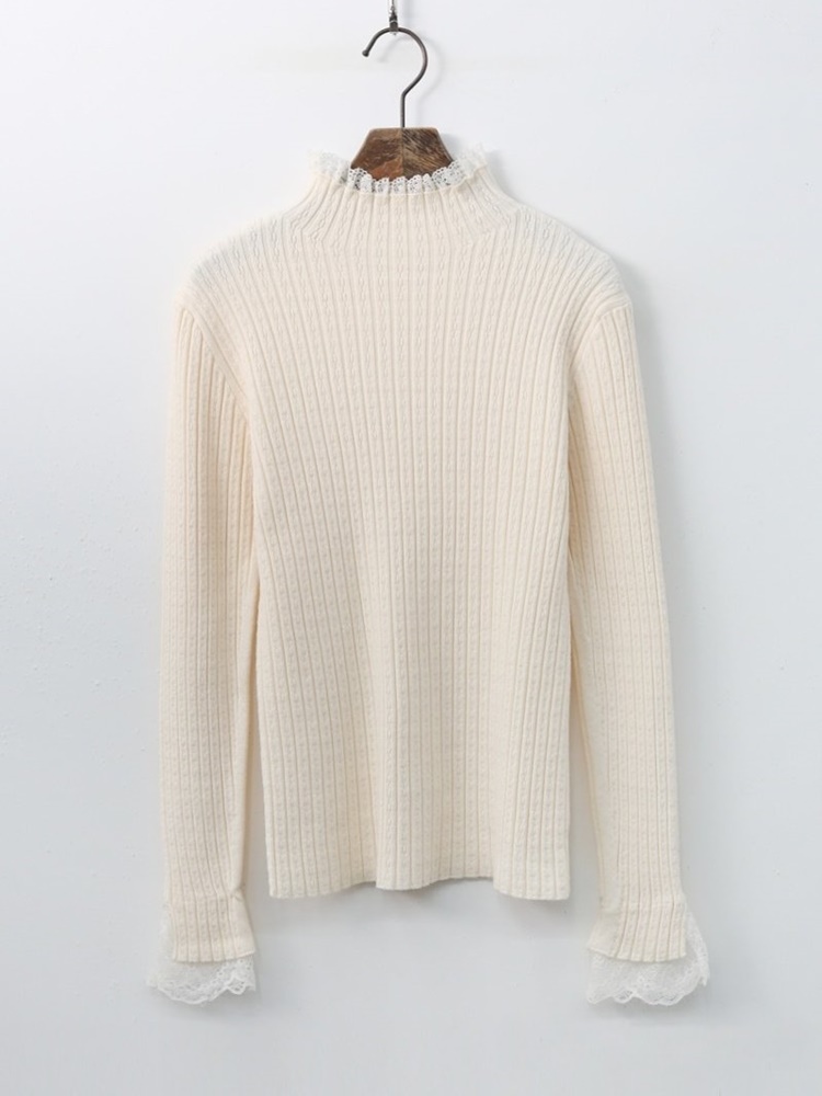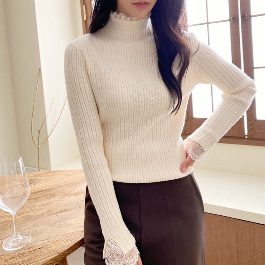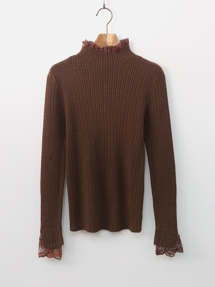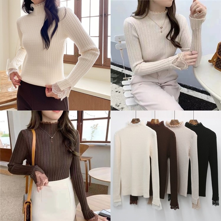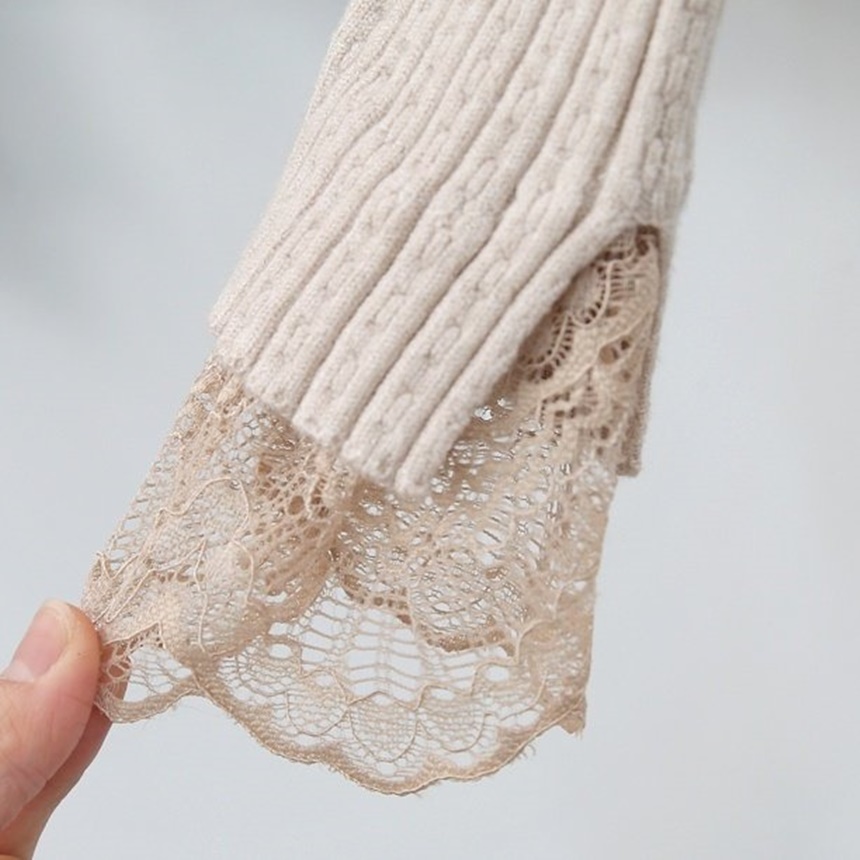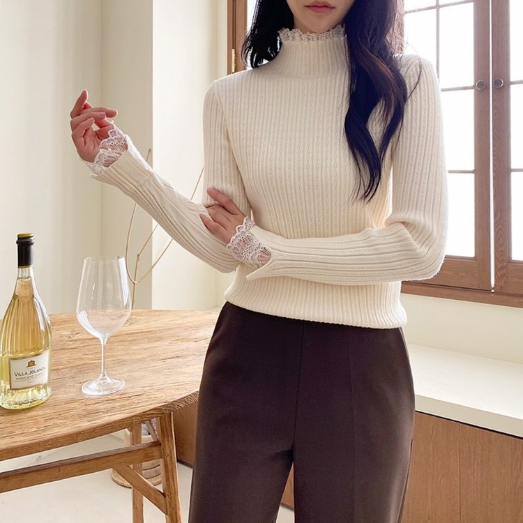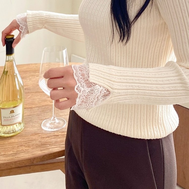 레이스 배색 니트 티셔츠 하객룩 출근패션