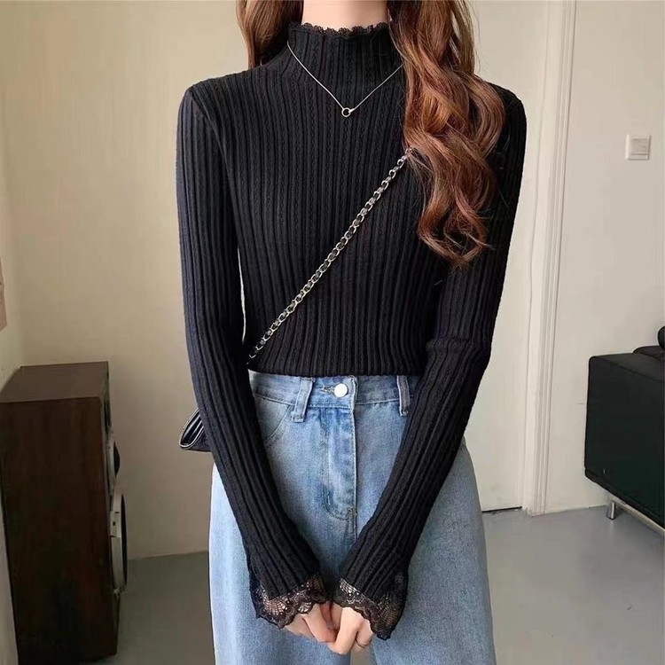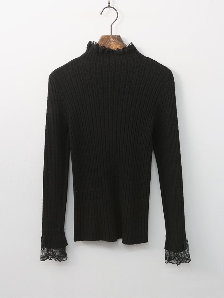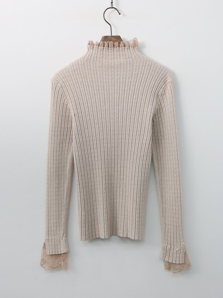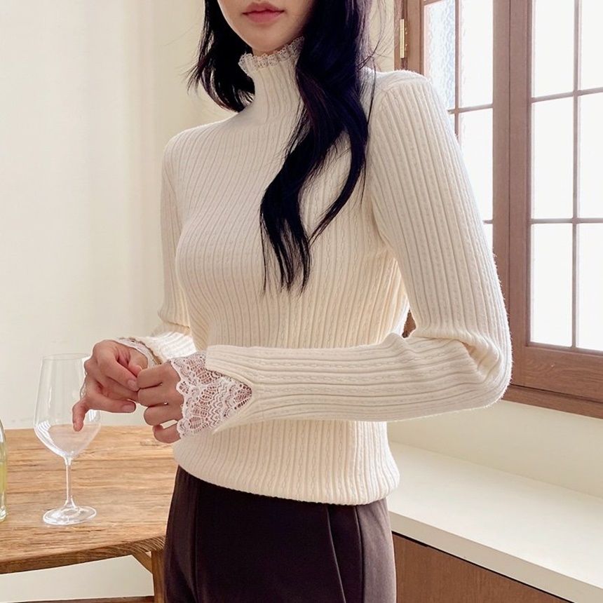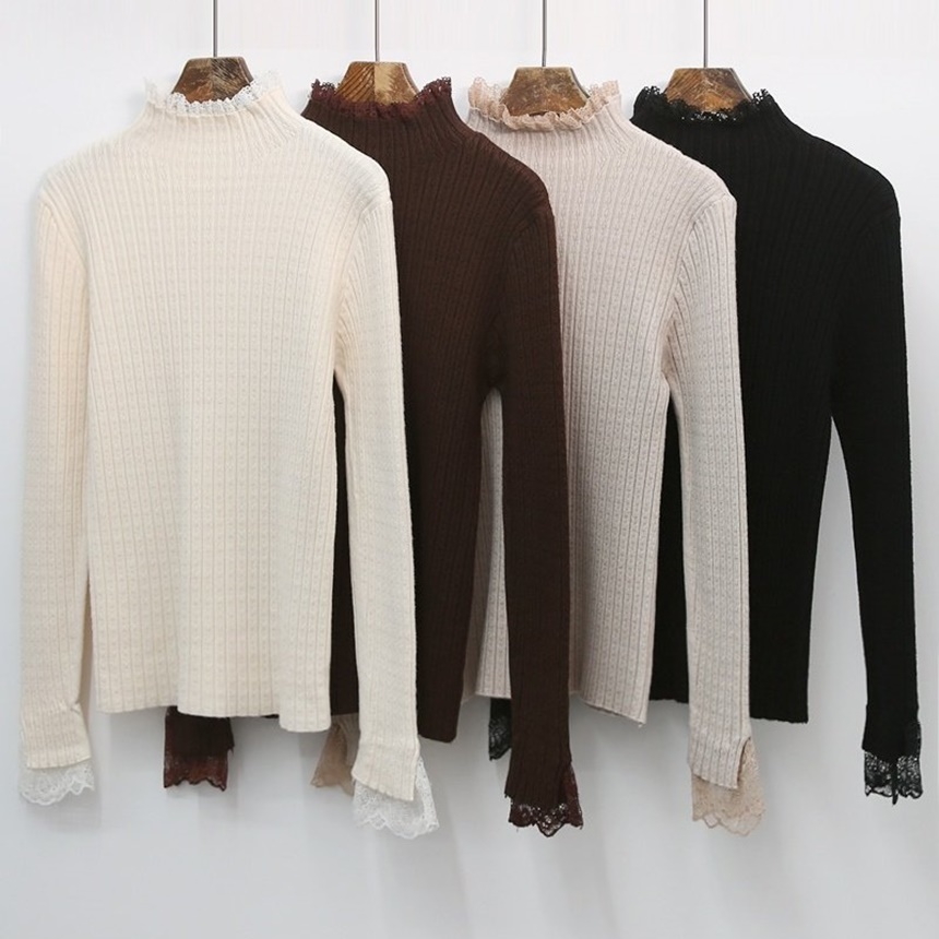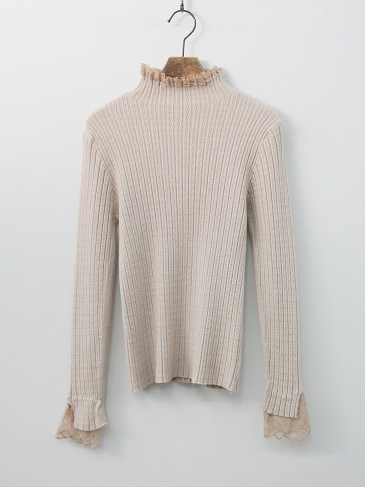 레이스 배색 니트 티셔츠 하객룩 출근패션