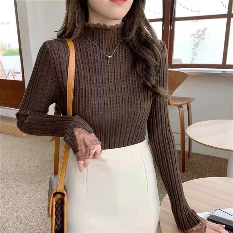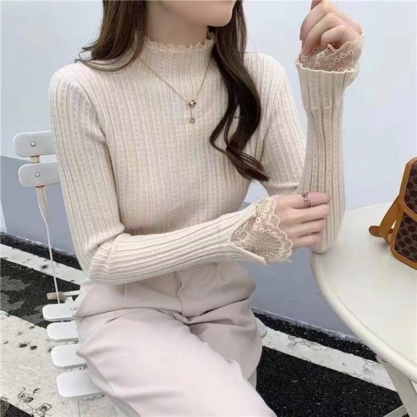 반하이 네크라인에 부드러운 레이스가