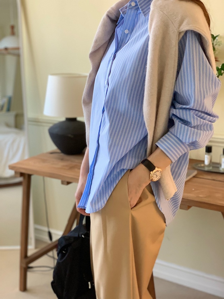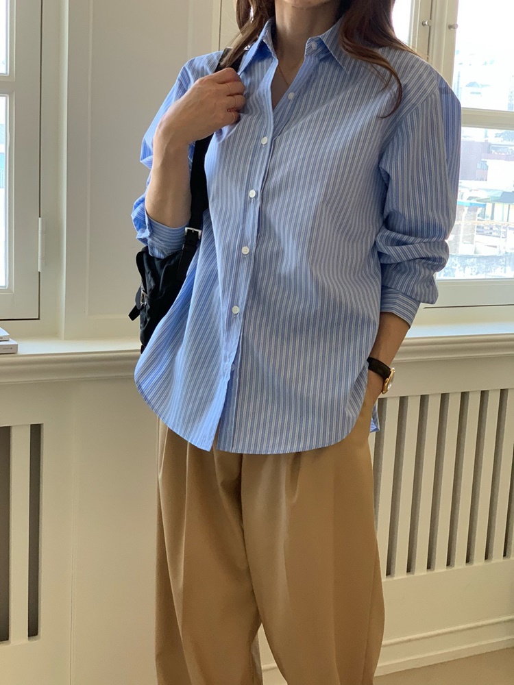 여성 구김없는 셔츠 코디 데일리 출근룩 패션