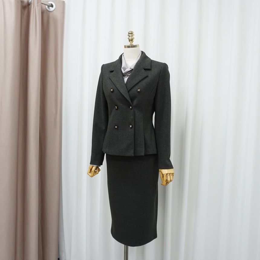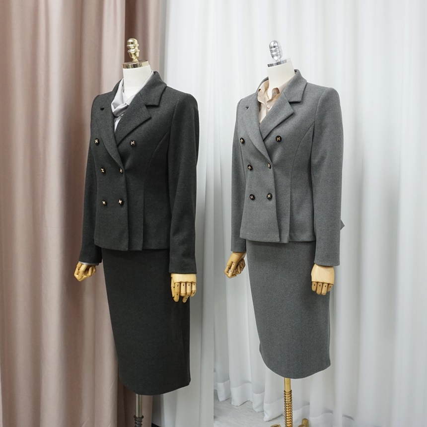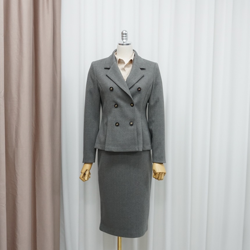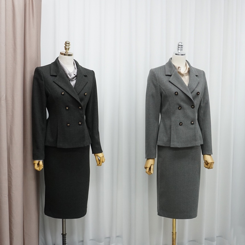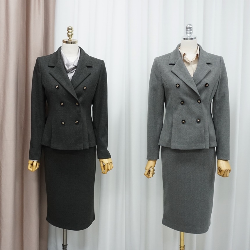 겨울 치마정장세트 허리 핀턱 자켓 스커트