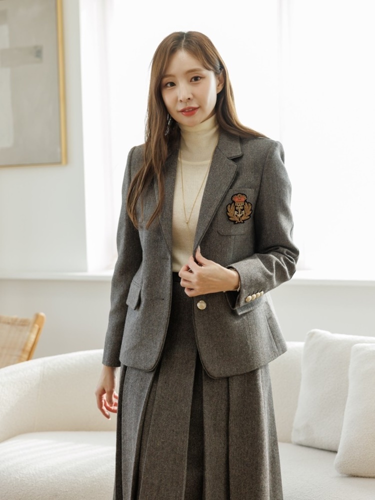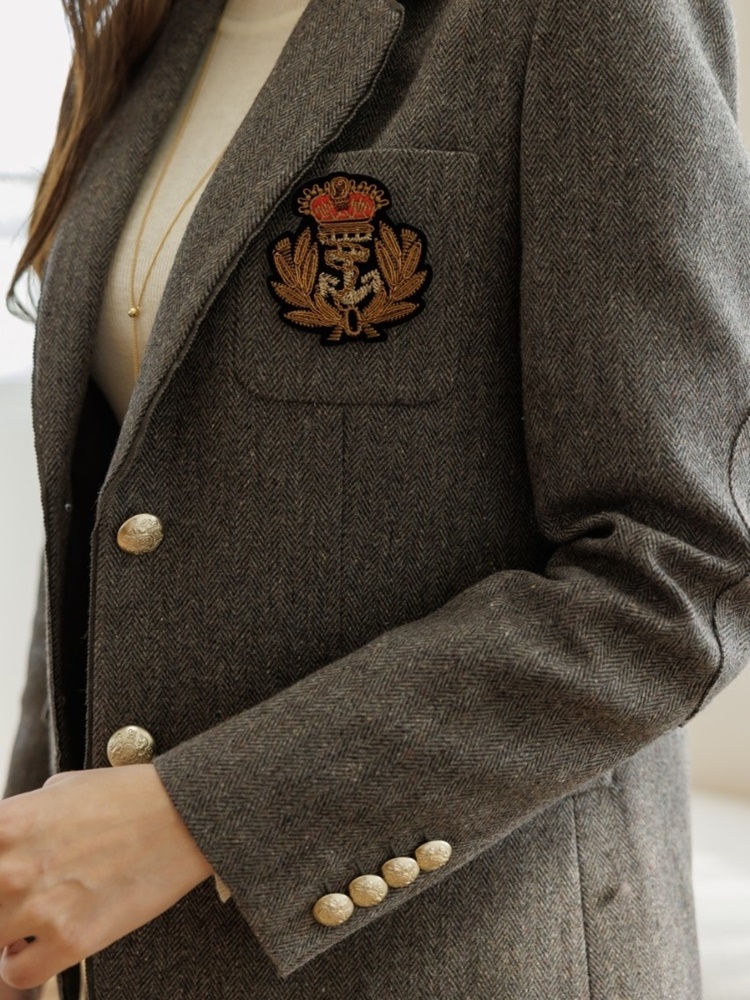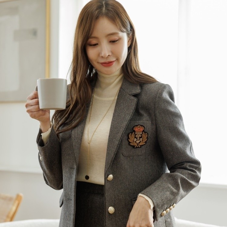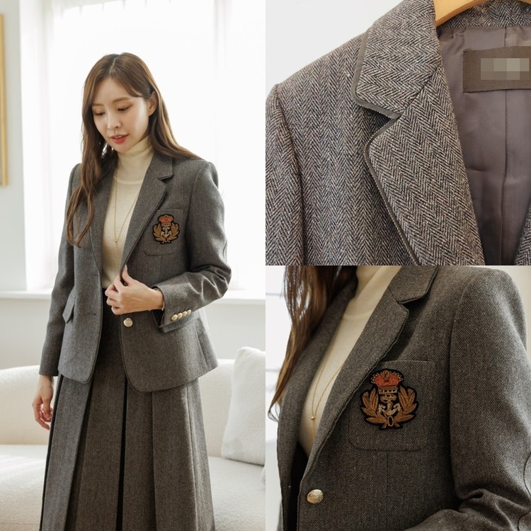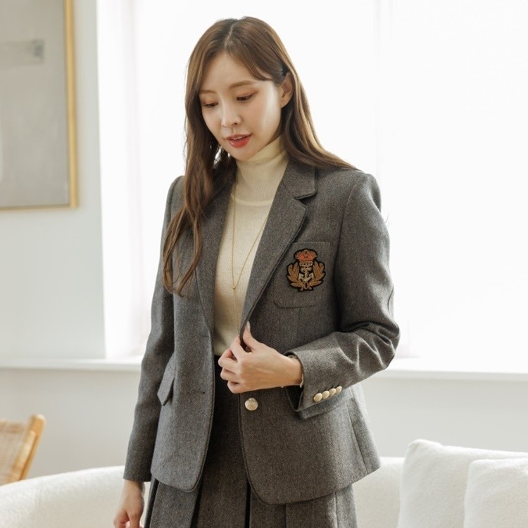 헤링본 싱글 투버튼 테일러드 자켓
