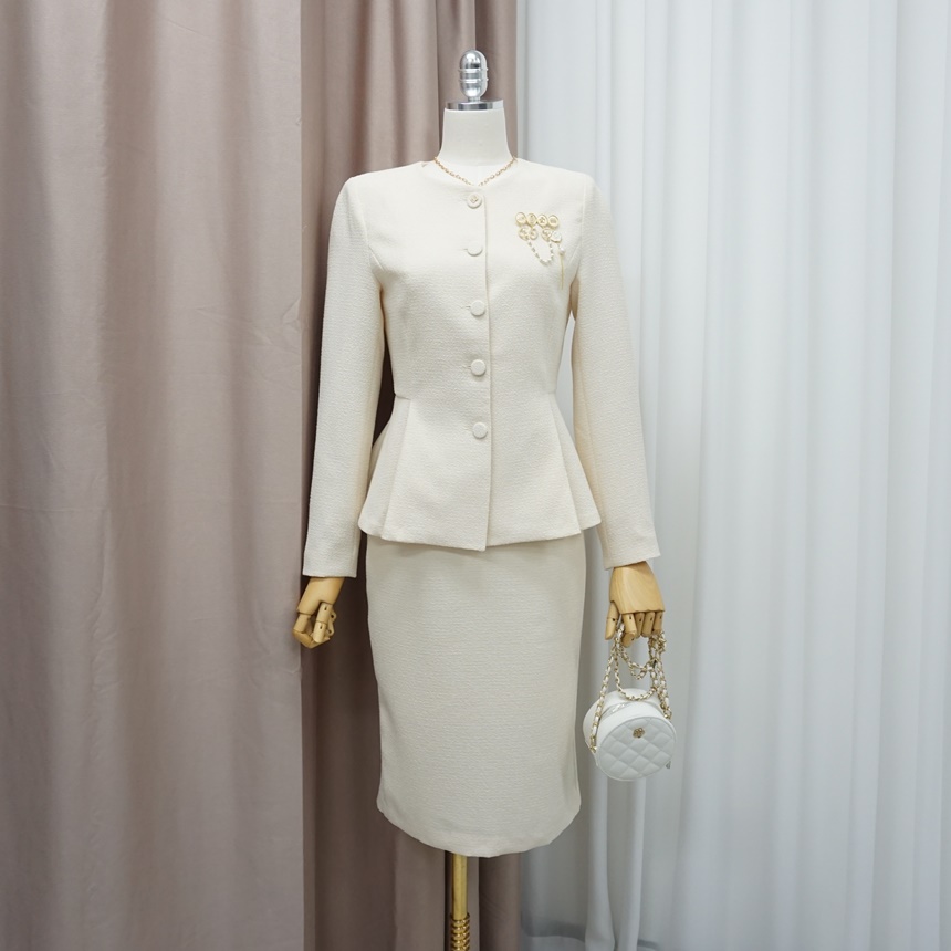 여성스러운 페플럼 라운드넥 노카라 자켓