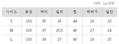 <사이즈> S, M, L