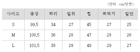 <사이즈> S, M, L