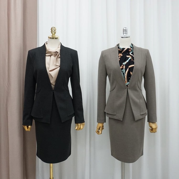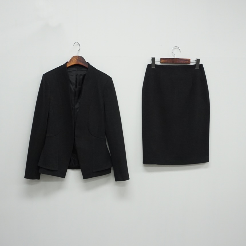 치마정장세트 노카라 페플럼 자켓