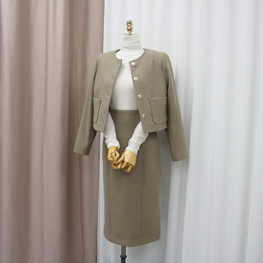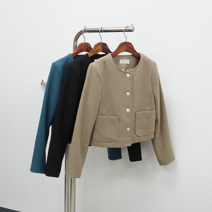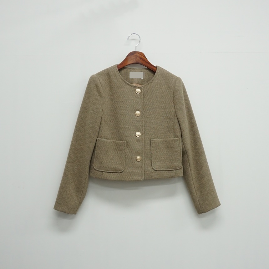노카라 라운드넥 트위드 크롭 자켓 하객룩