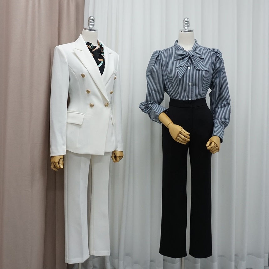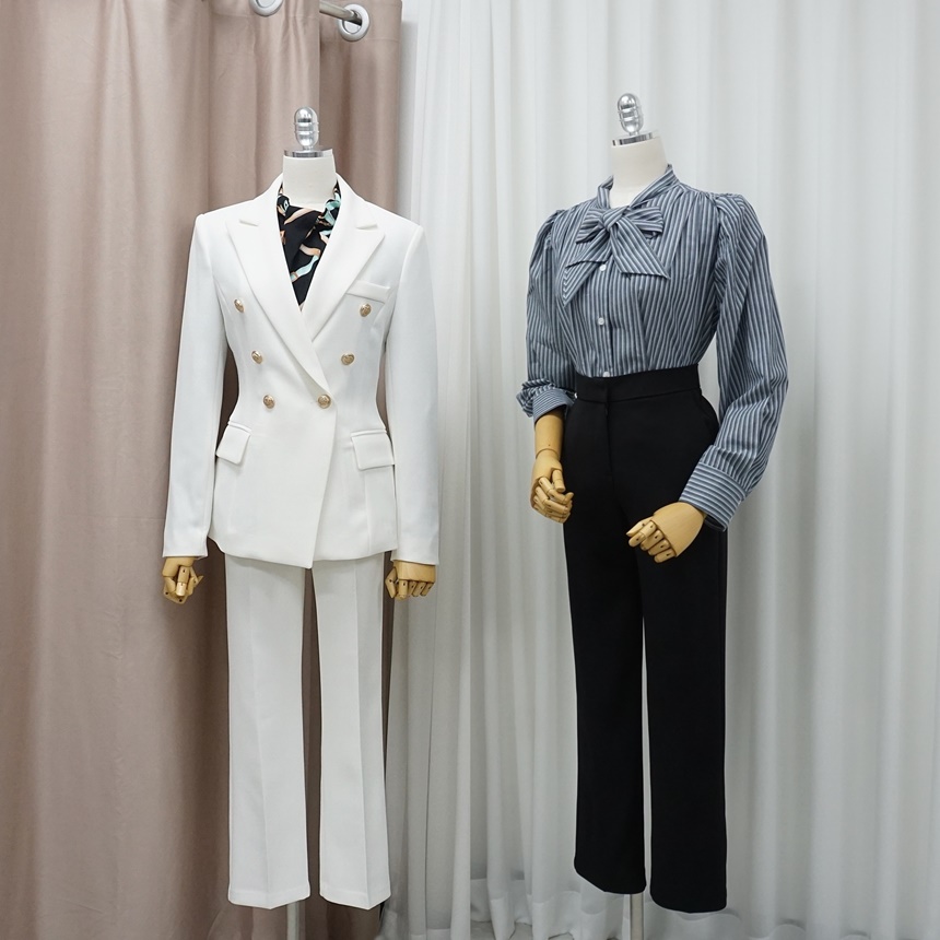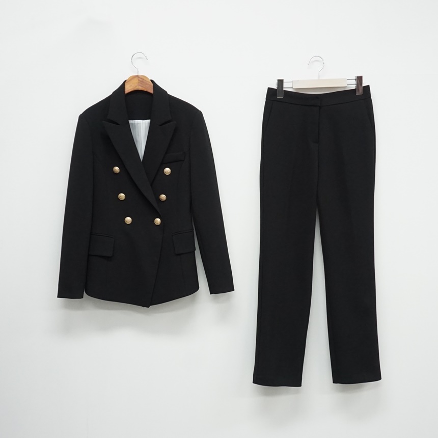 더블자켓 스판 슬랙스 투피스 출근패션