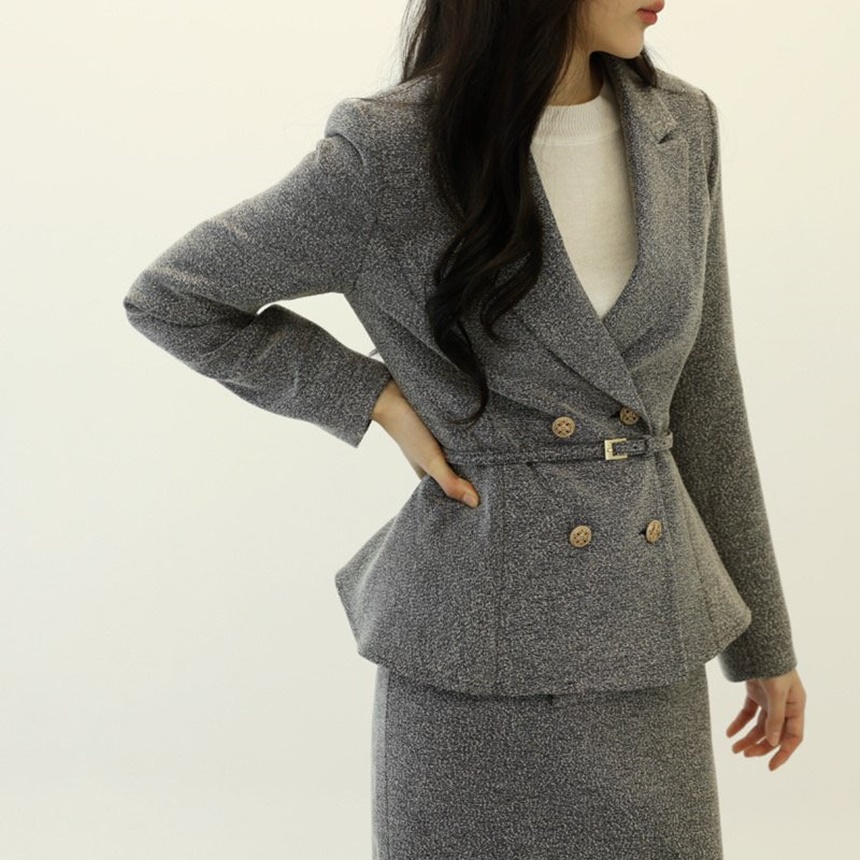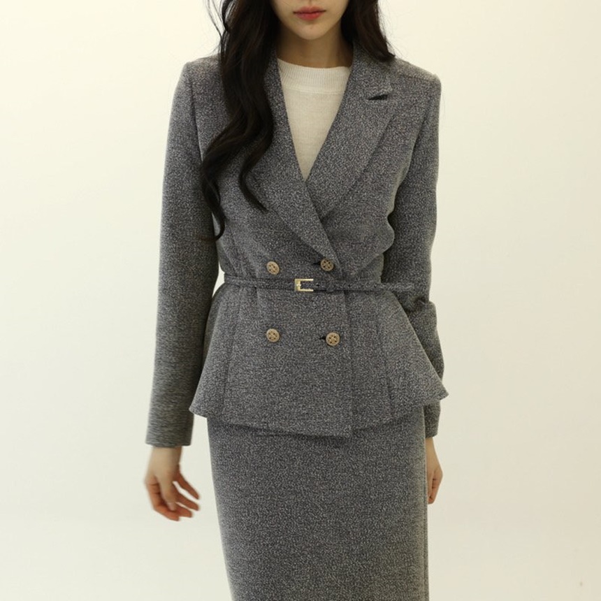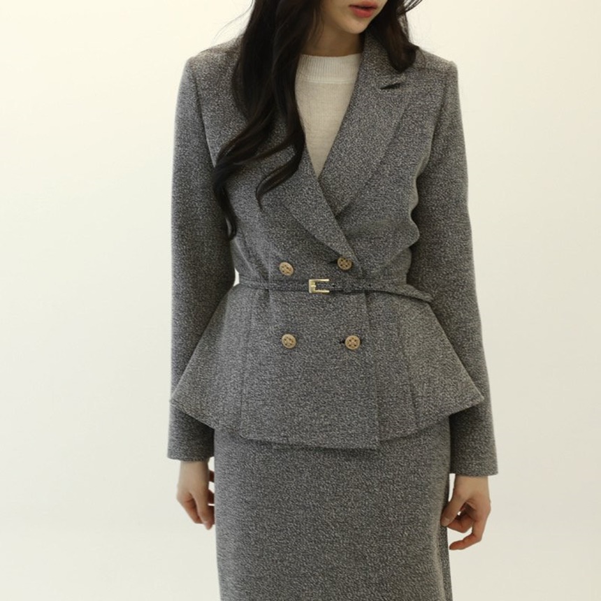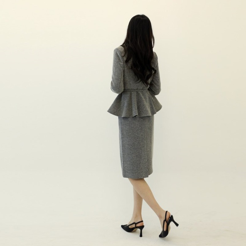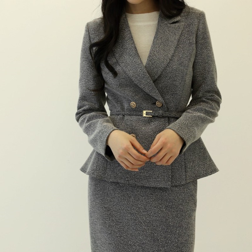 벨티드 치마정장세트 하객룩 유니폼룩