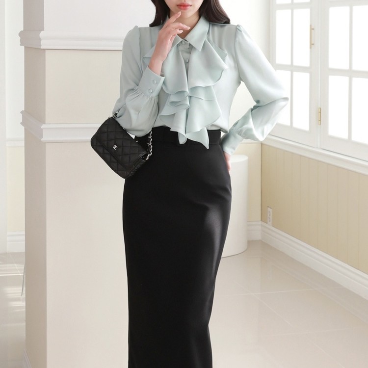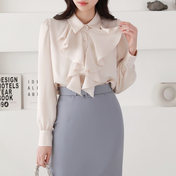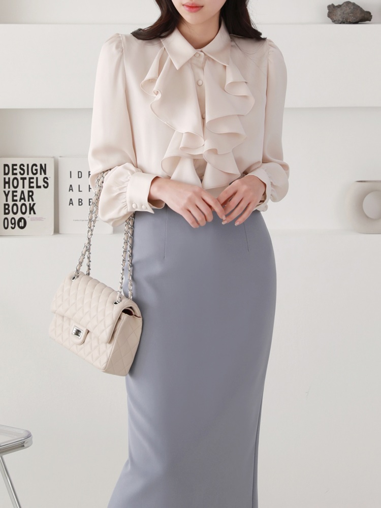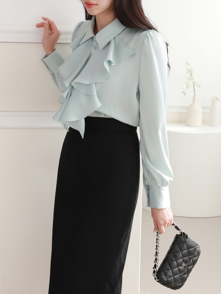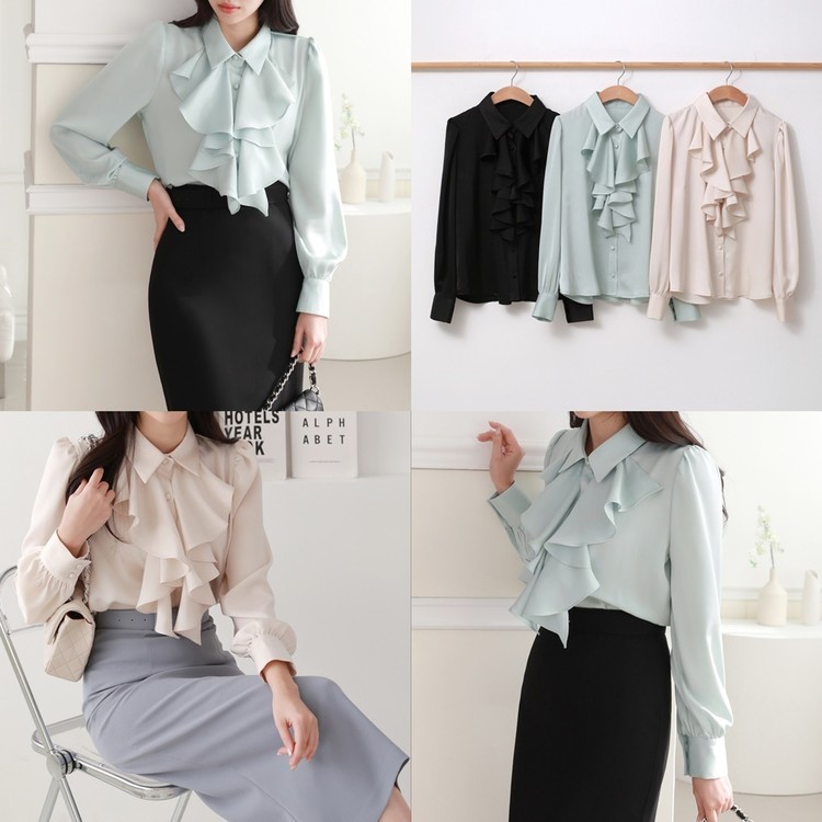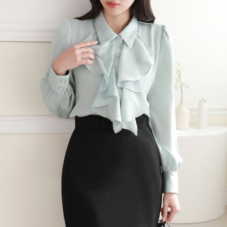 여성스러운 카라넥 브라우스 데일리 오피스룩