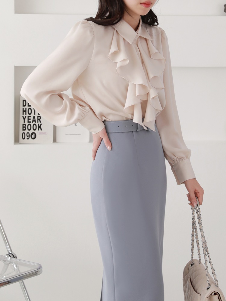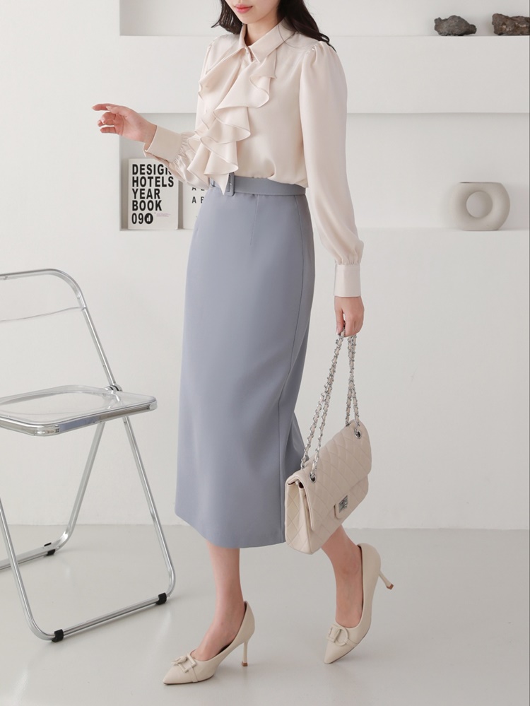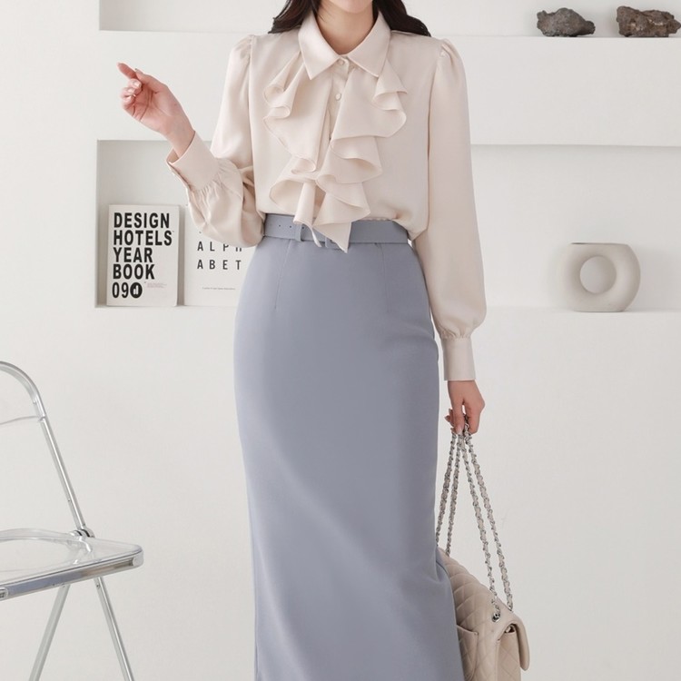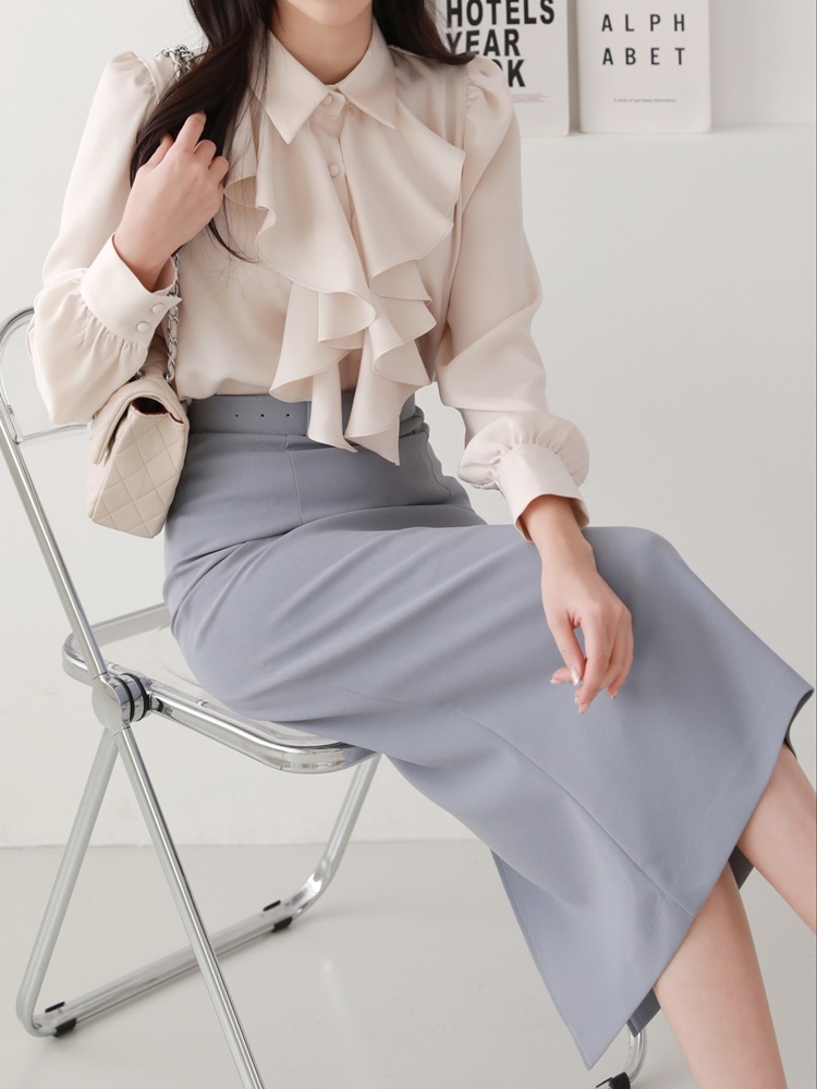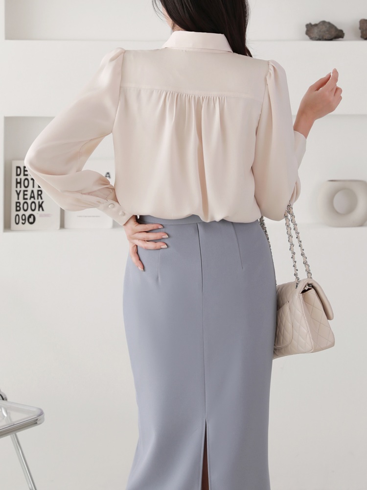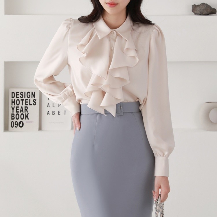여성스러운 카라넥 브라우스 데일리 오피스룩