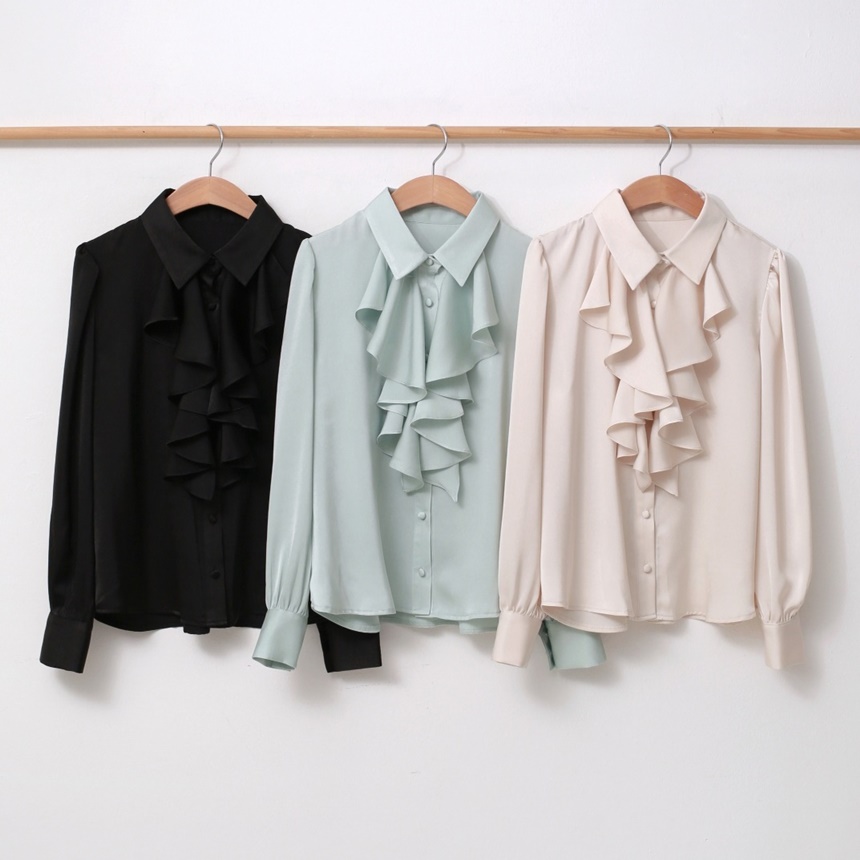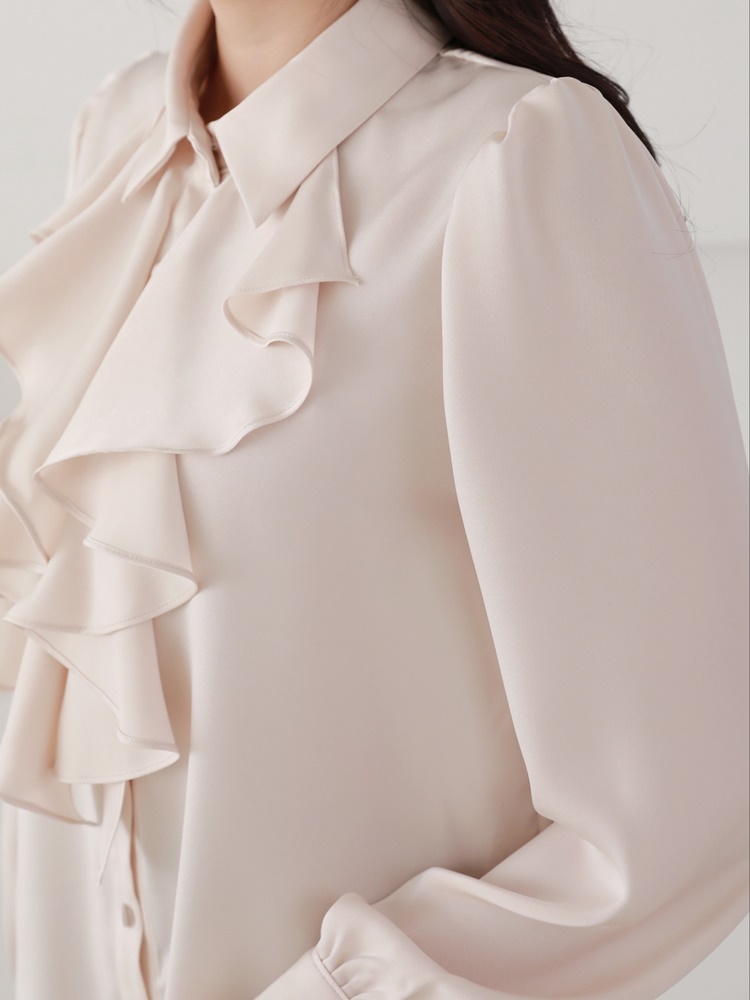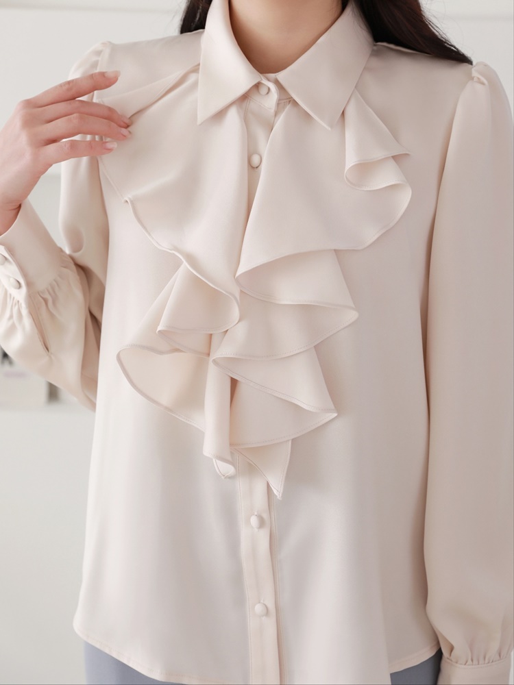 풍성한 캐스캐이딩 러플 쉬폰 블라우스