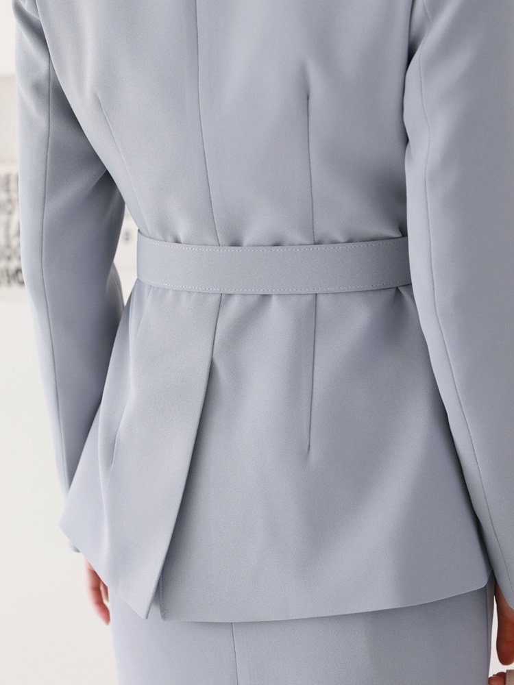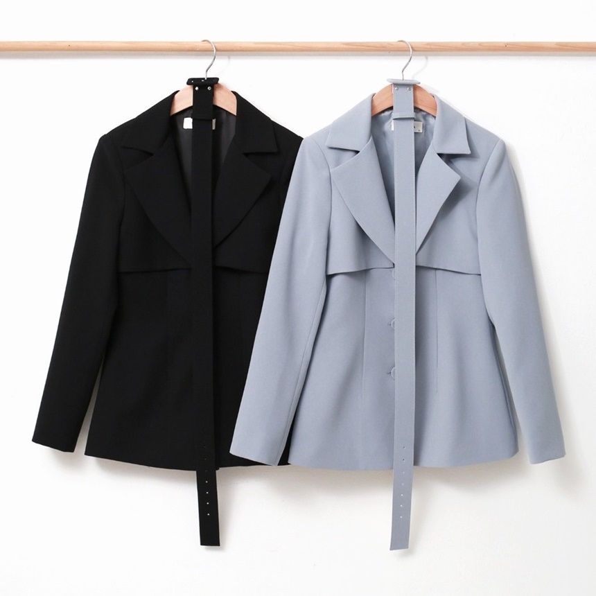 세련된 벨티드 건플랩 슬림 자켓
