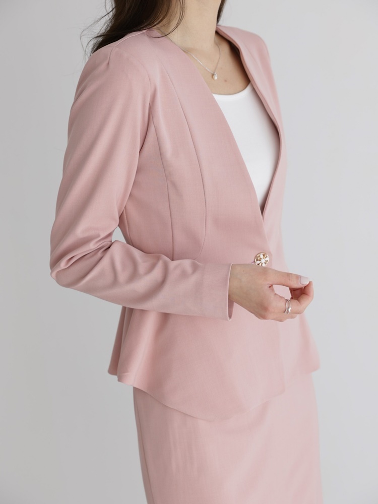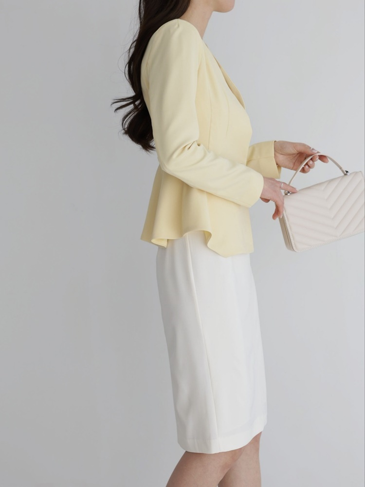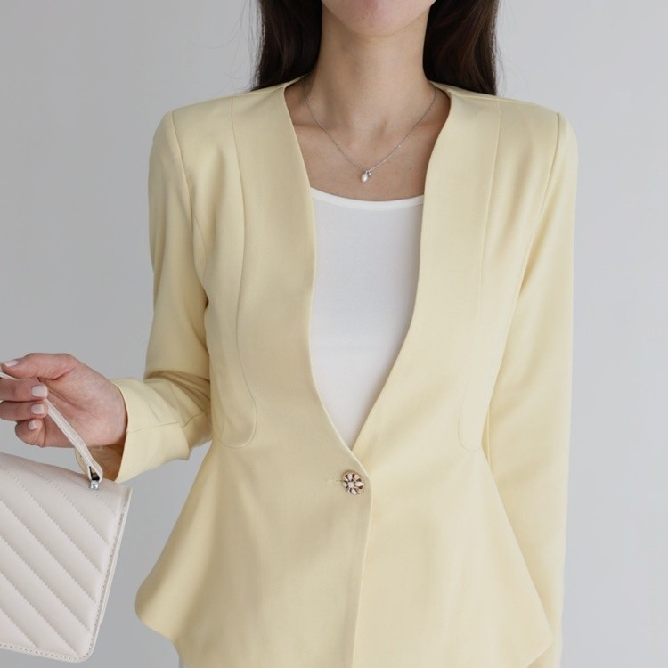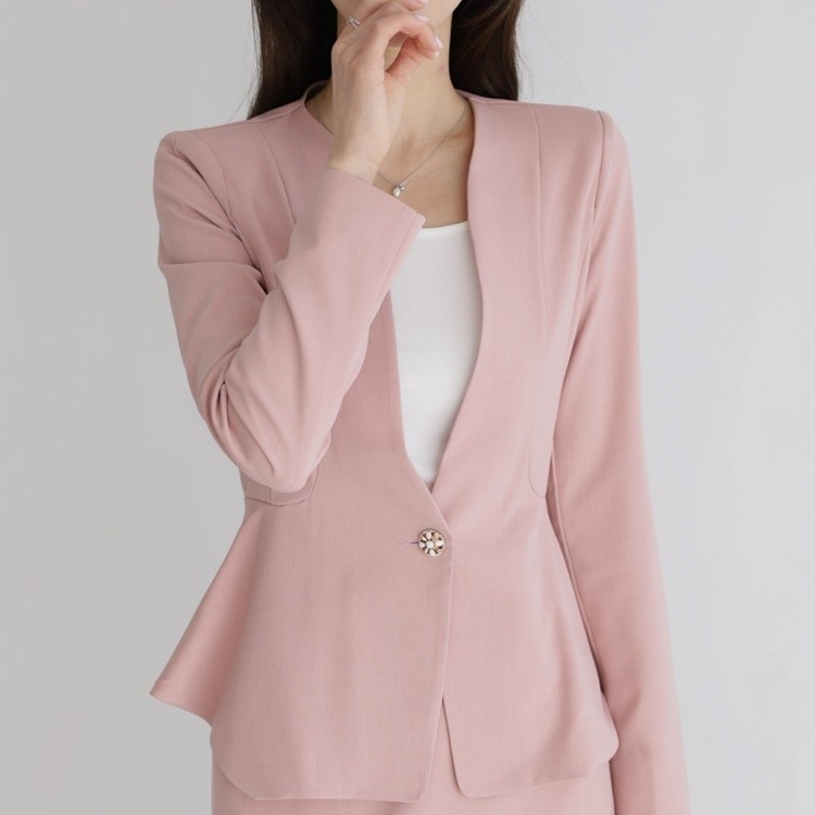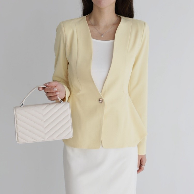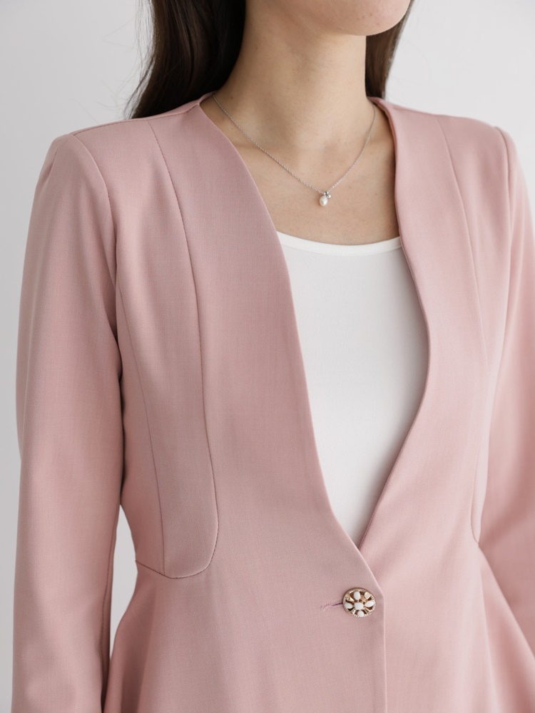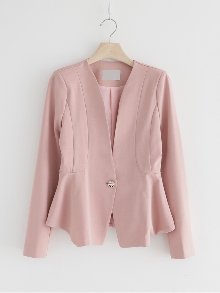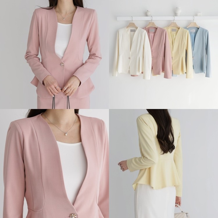 산뜻한 파스텔 노카라 페플럼 자켓 하객룩