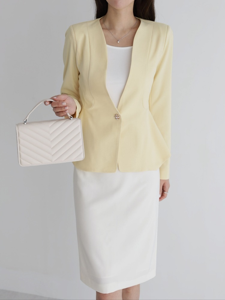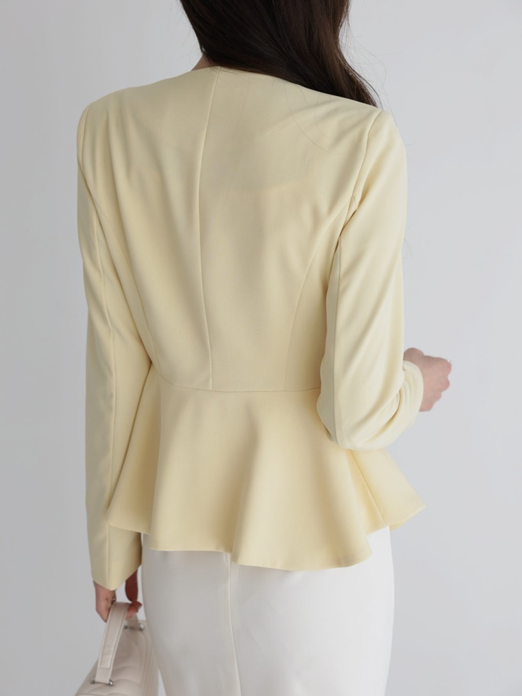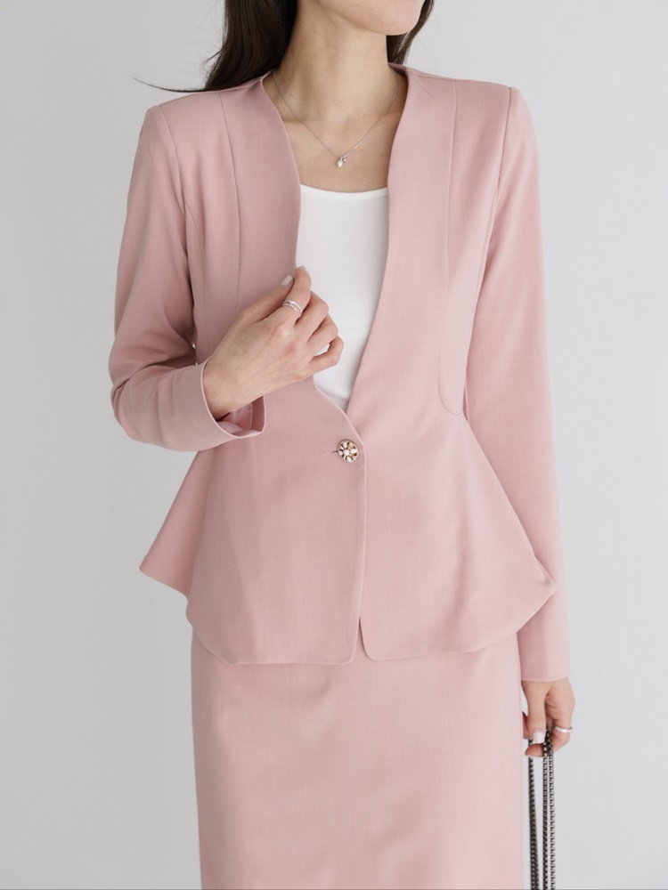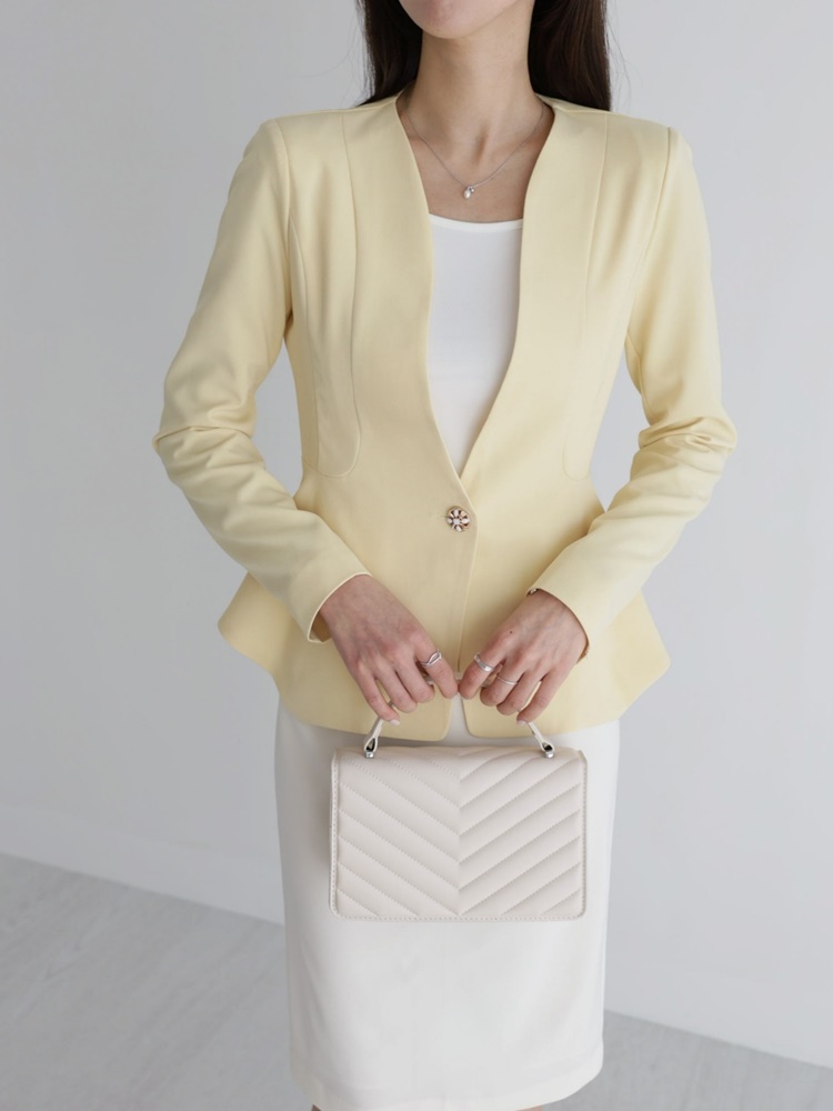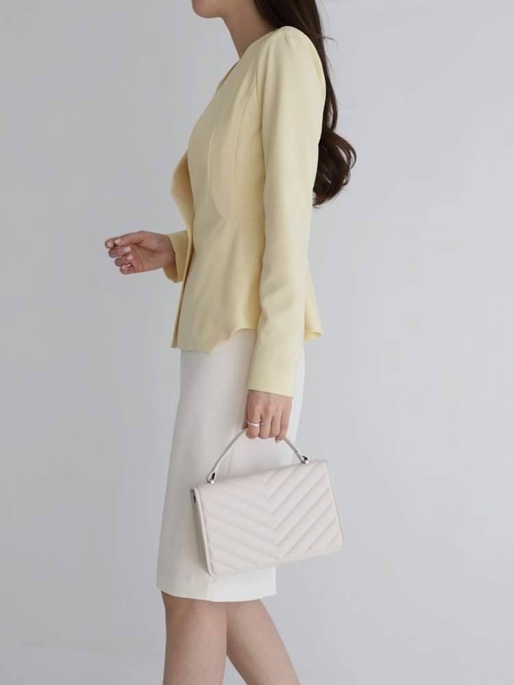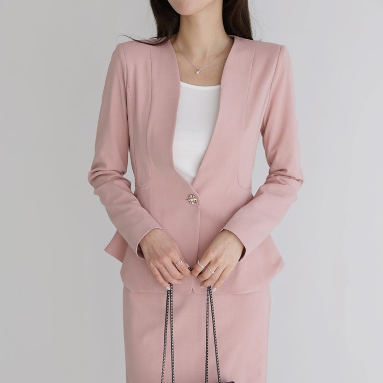 산뜻한 파스텔 노카라 페플럼 자켓 하객룩