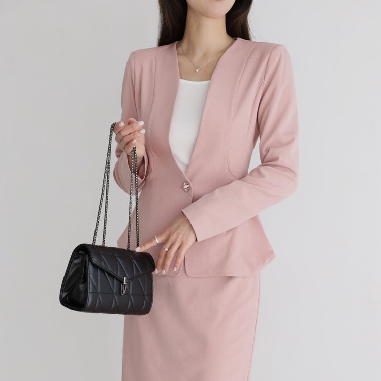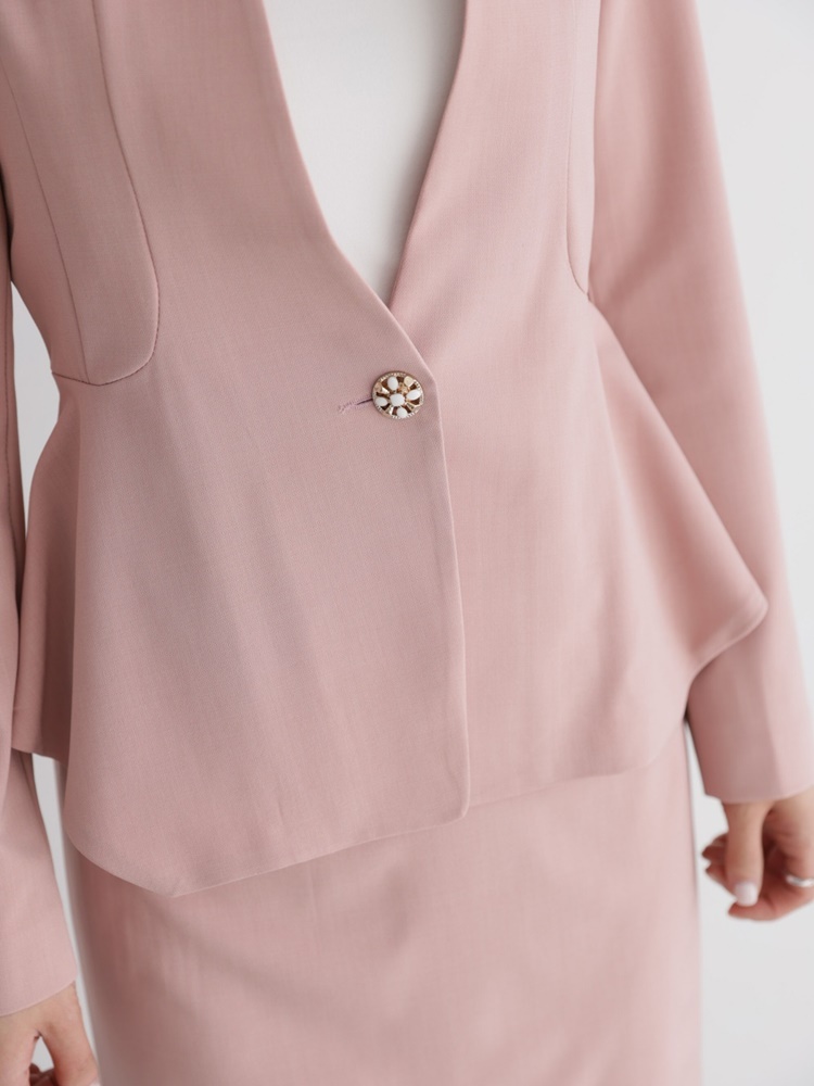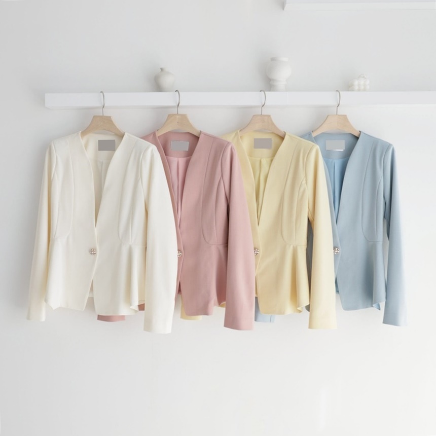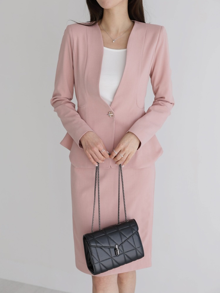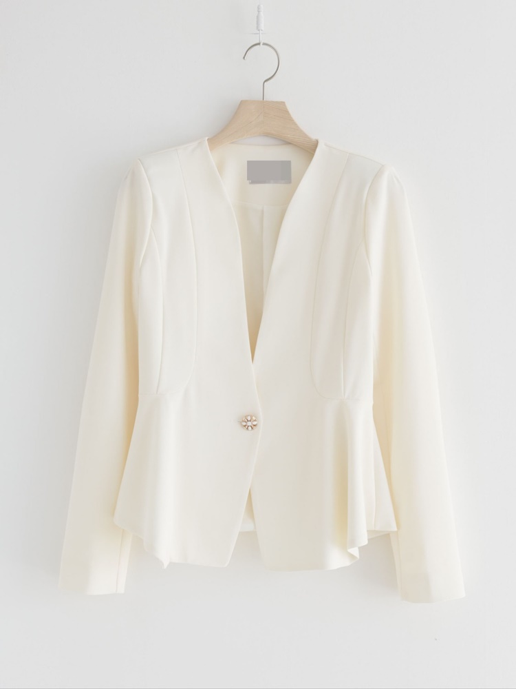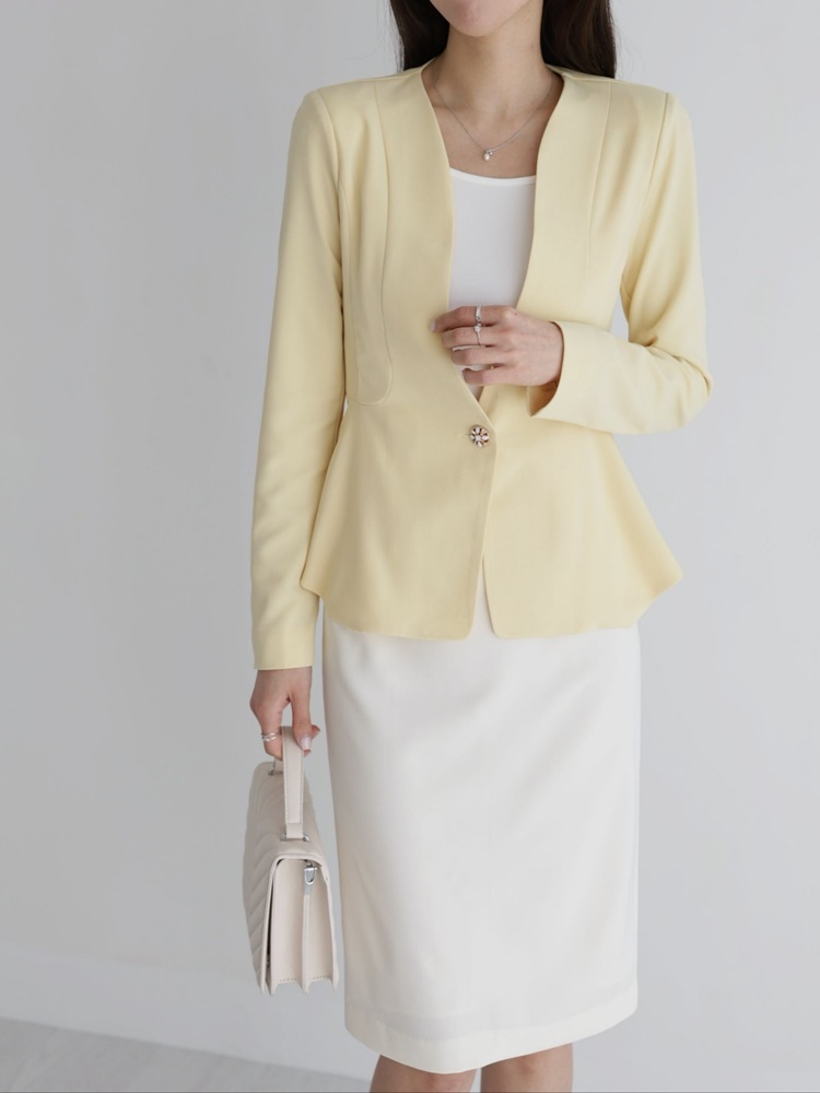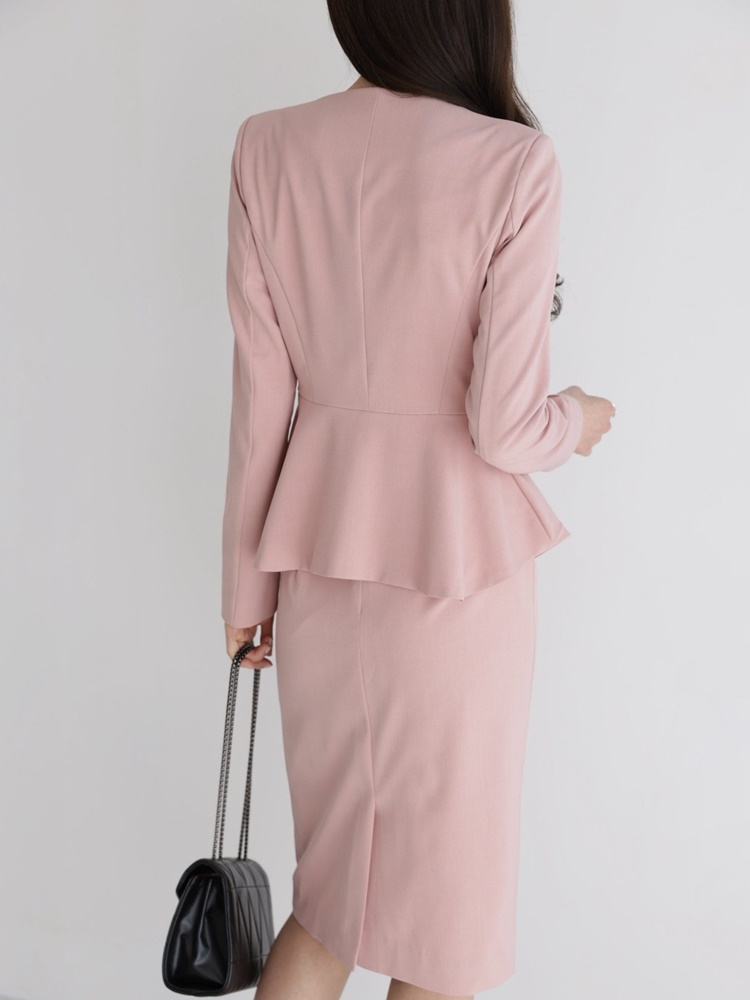 산뜻한 파스텔 노카라 페플럼 자켓 하객룩