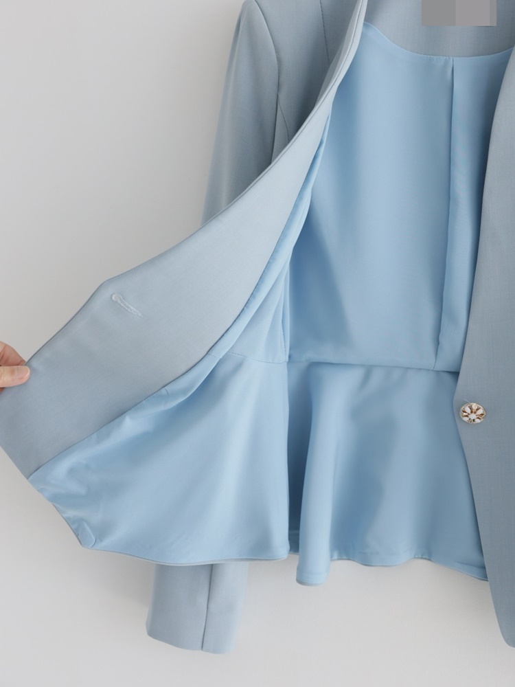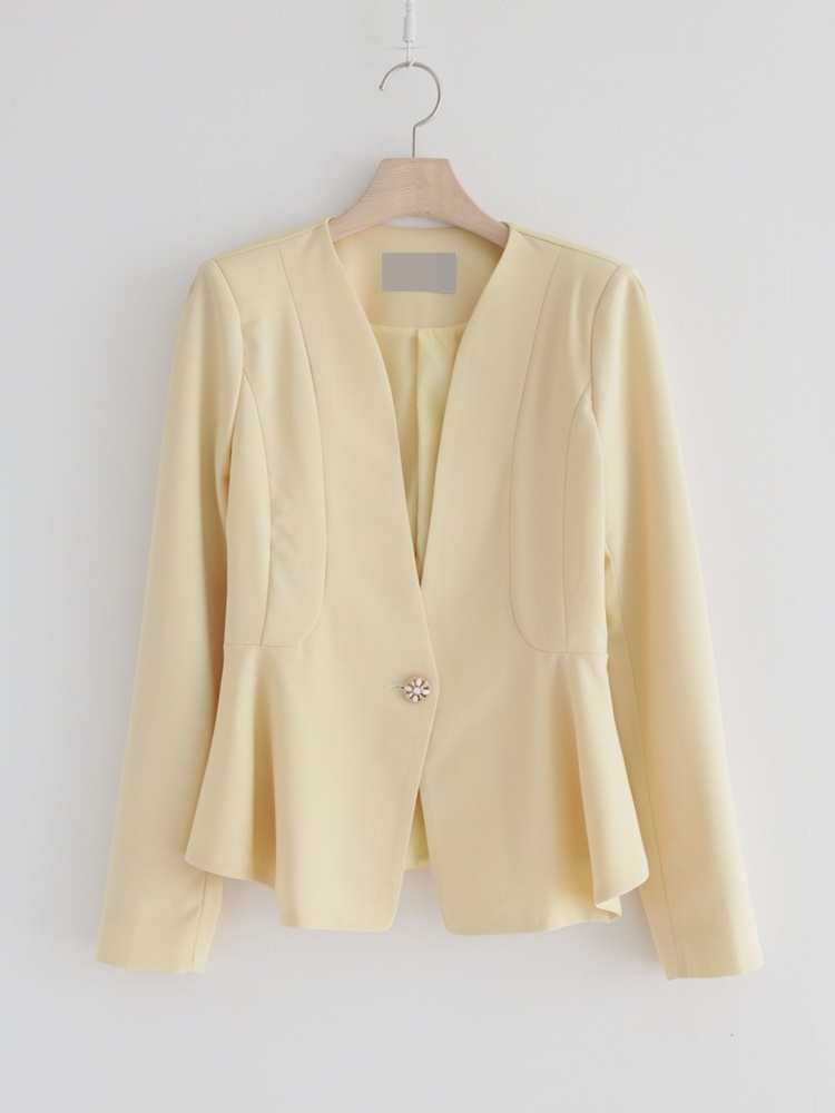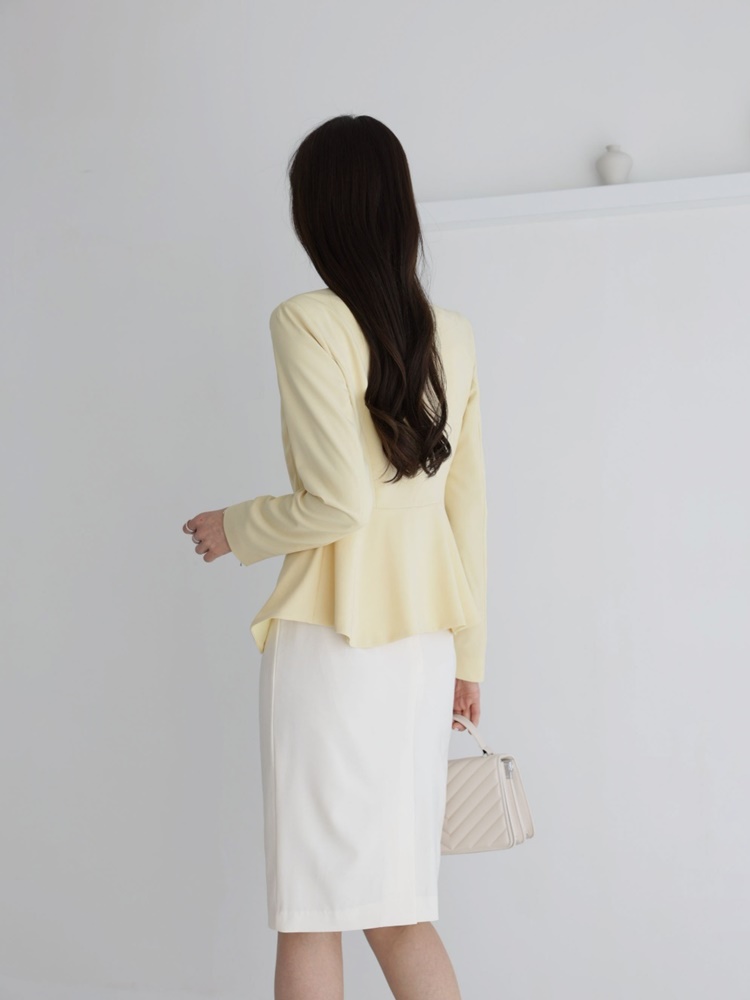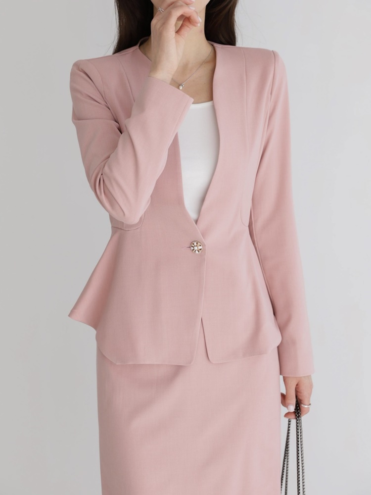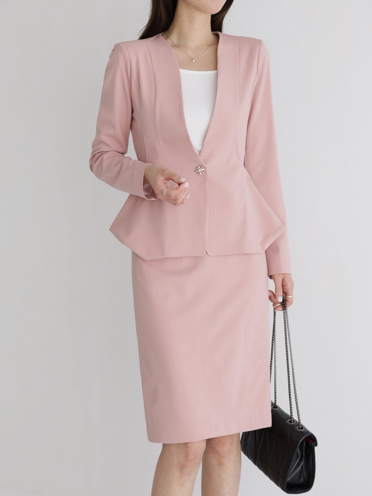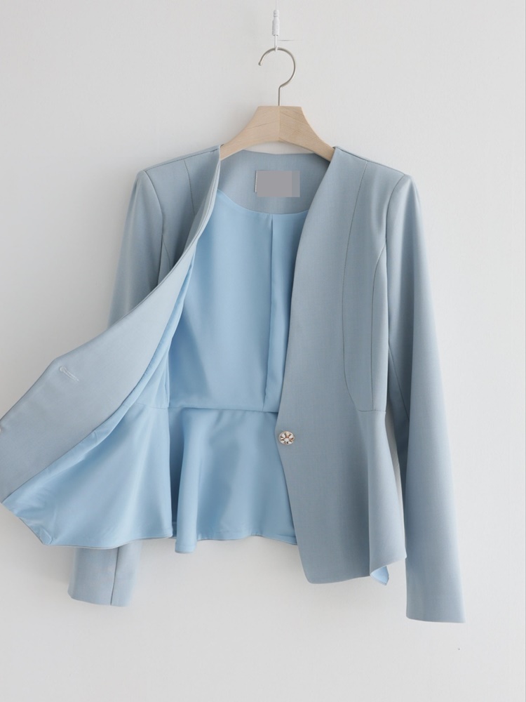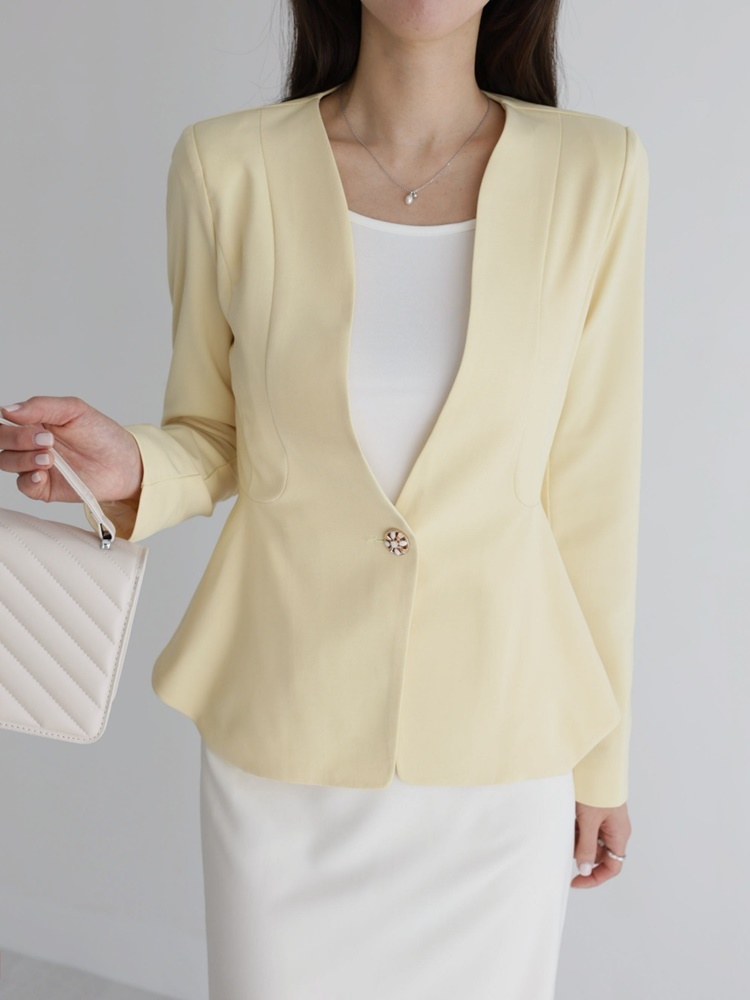 산뜻한 파스텔 노카라 페플럼 자켓 하객룩