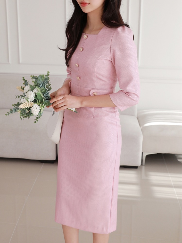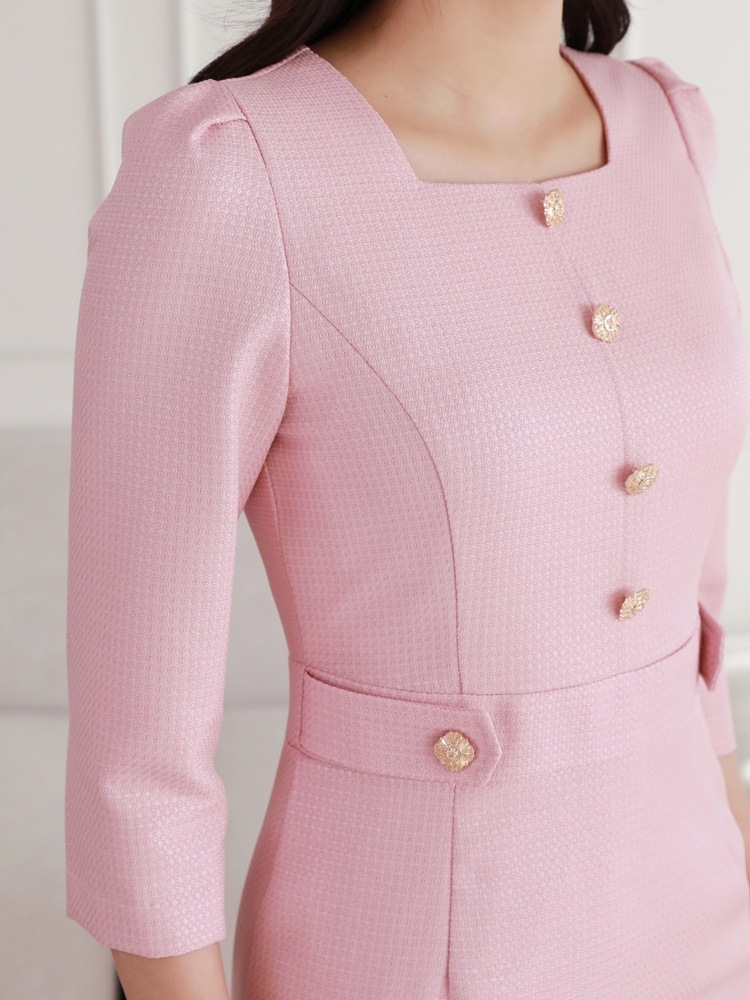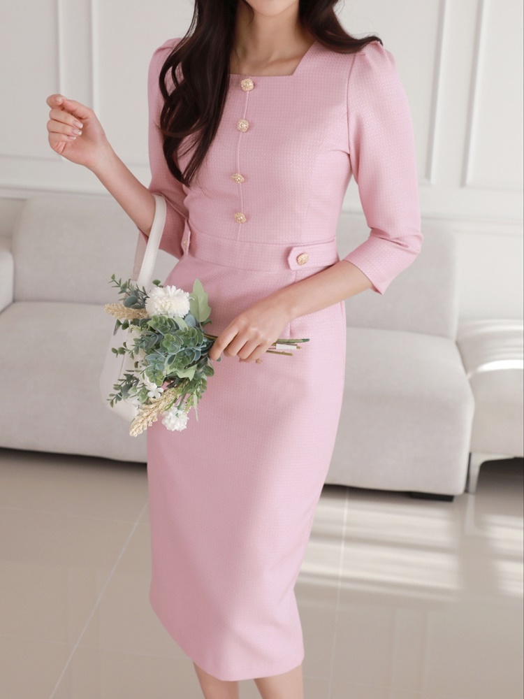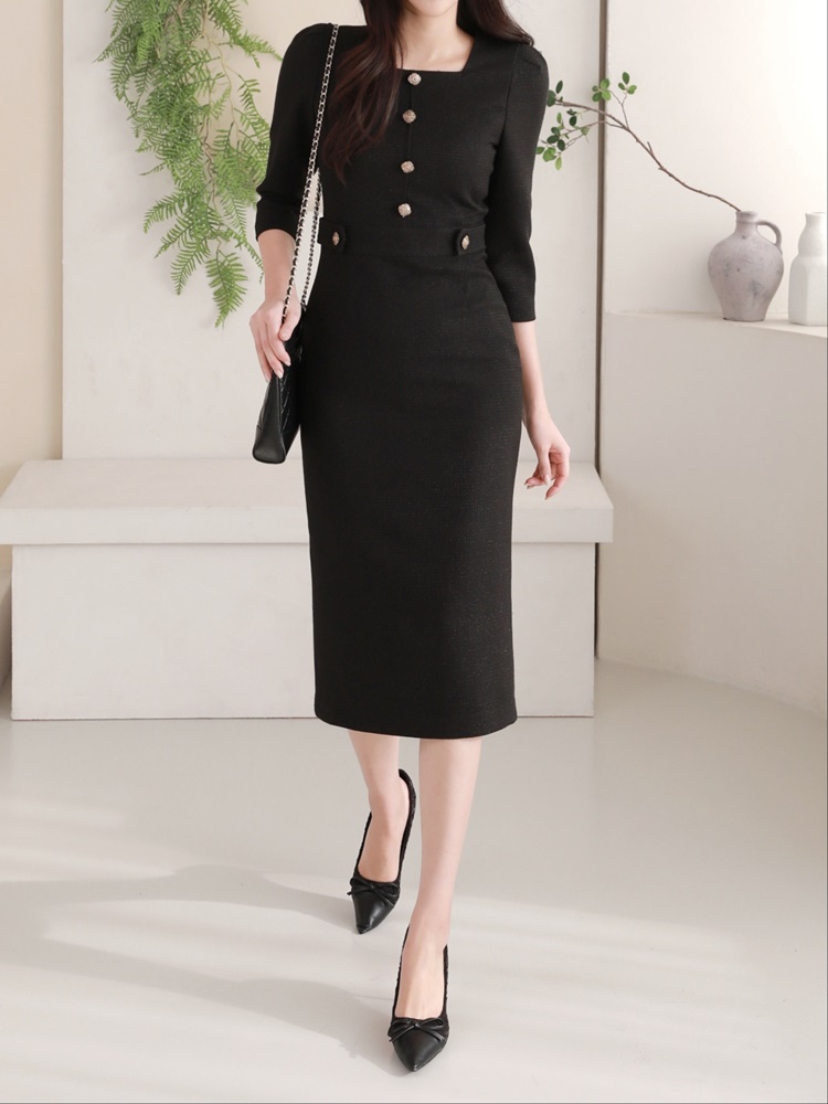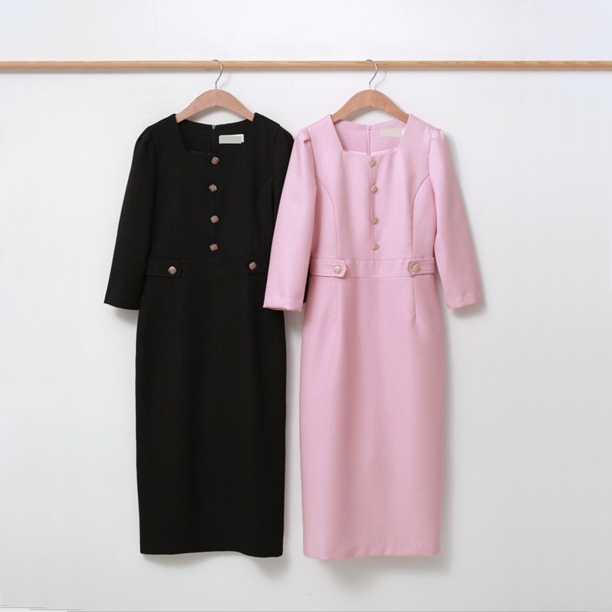 허리비죠 스퀘어넥 슬림 스판 H라인 원피스