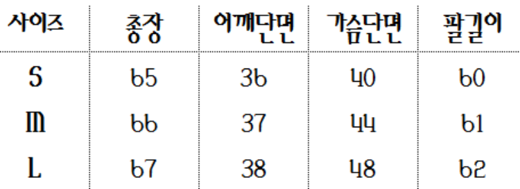 <자켓사이즈표>