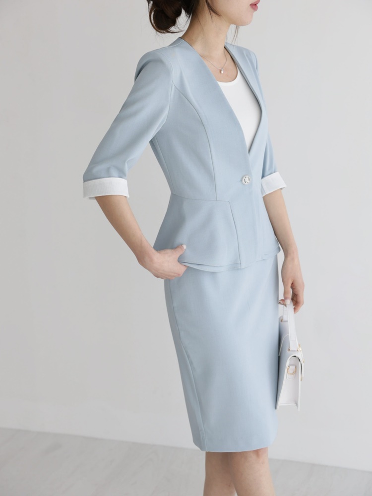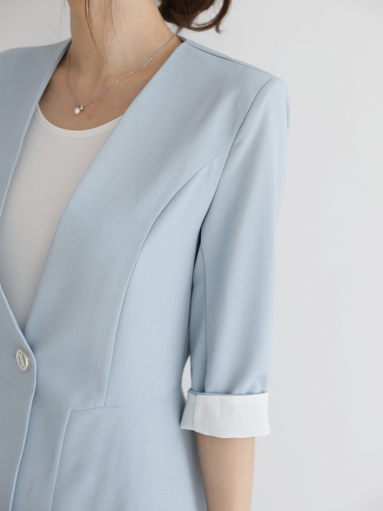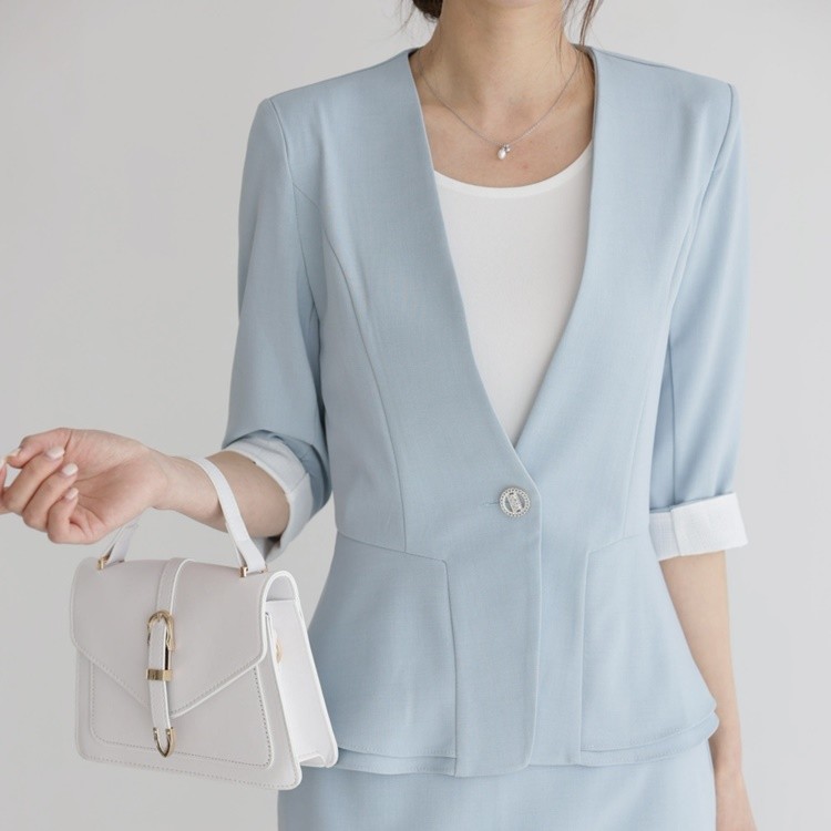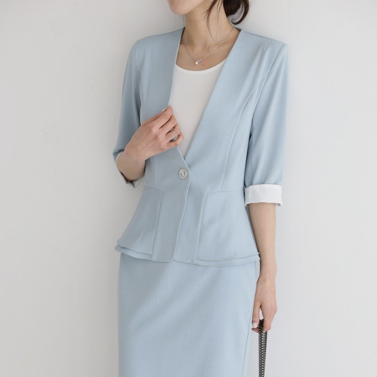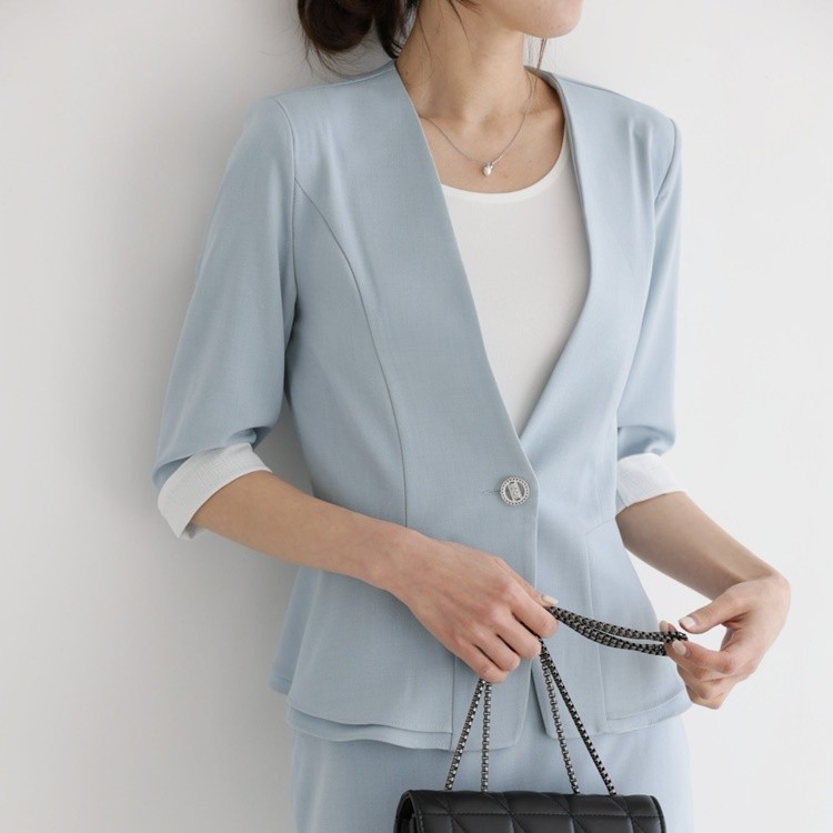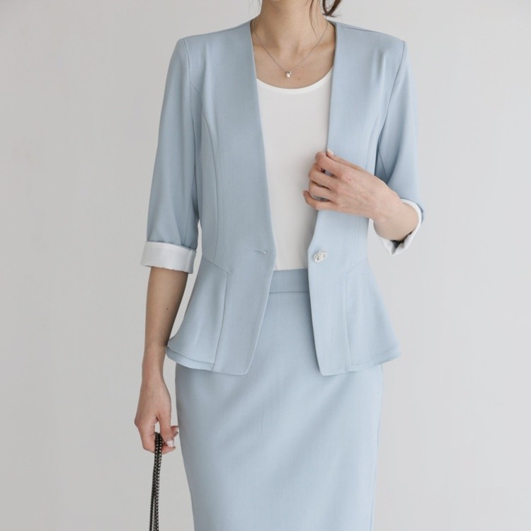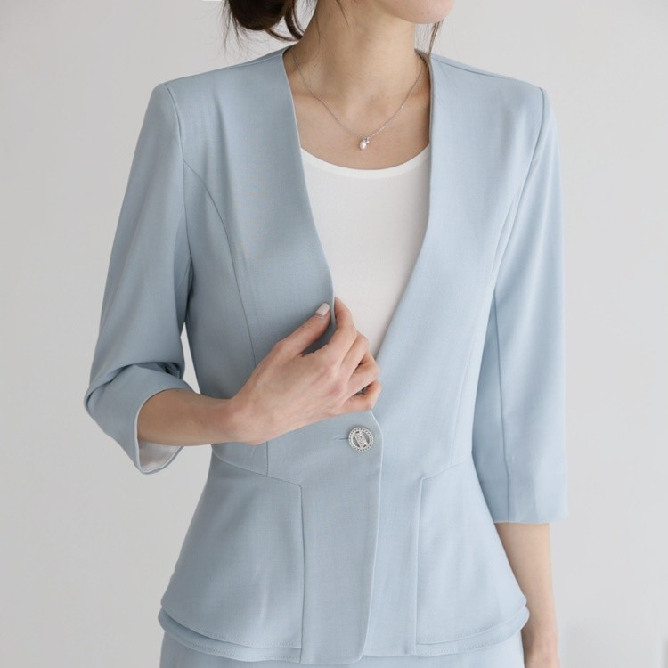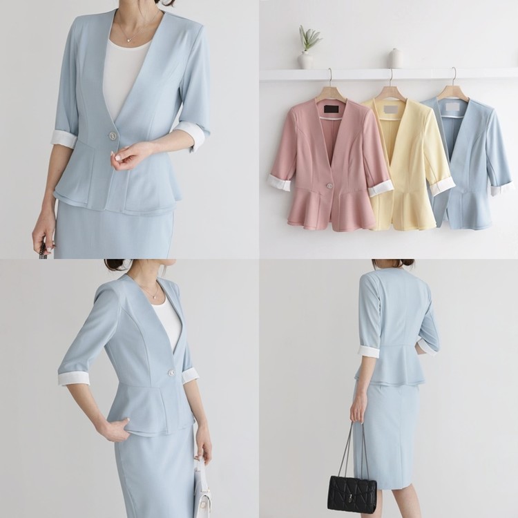 여름 노카라 페플럼 7부 자켓 오피스룩