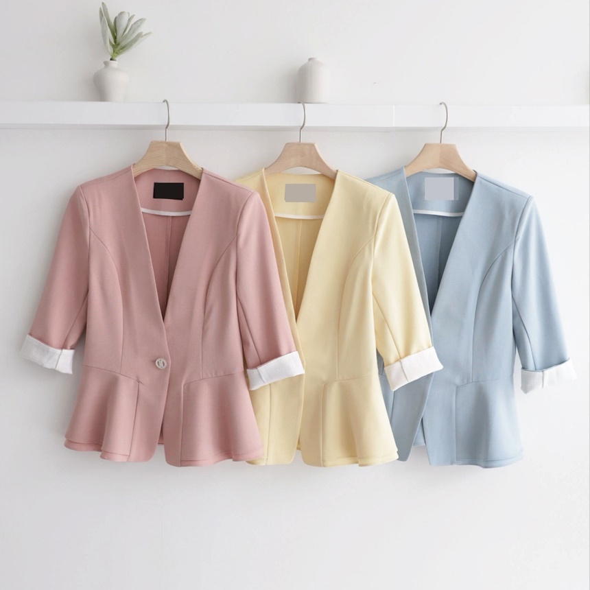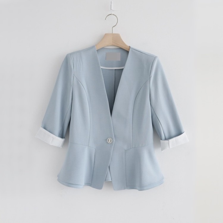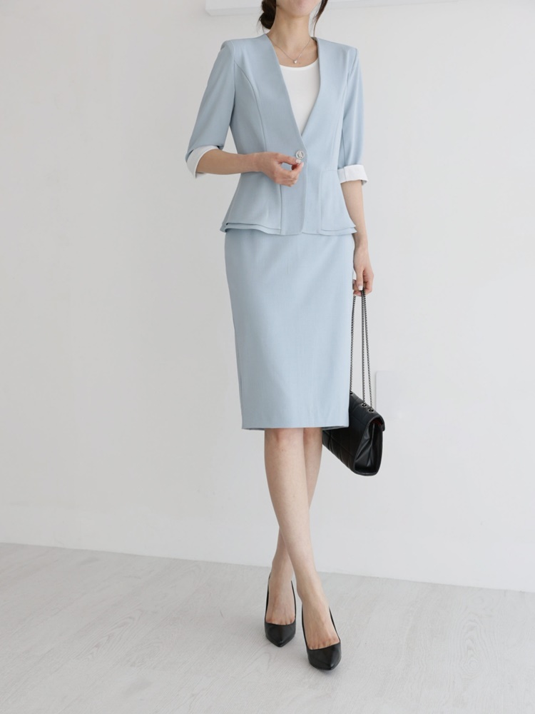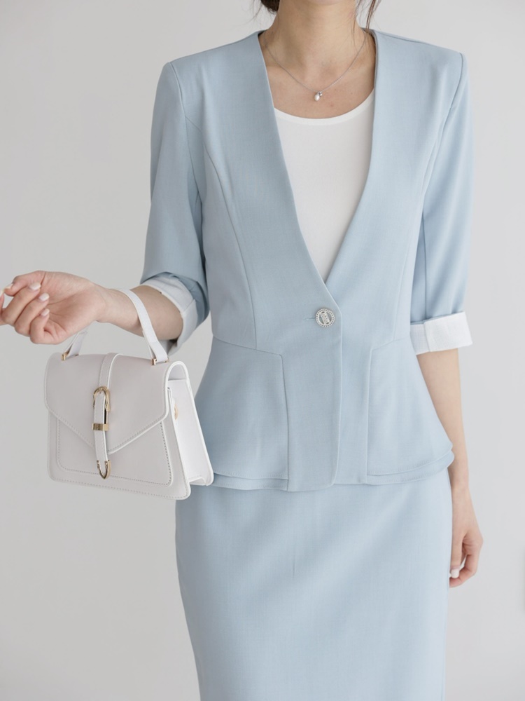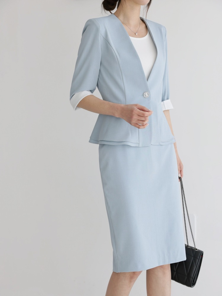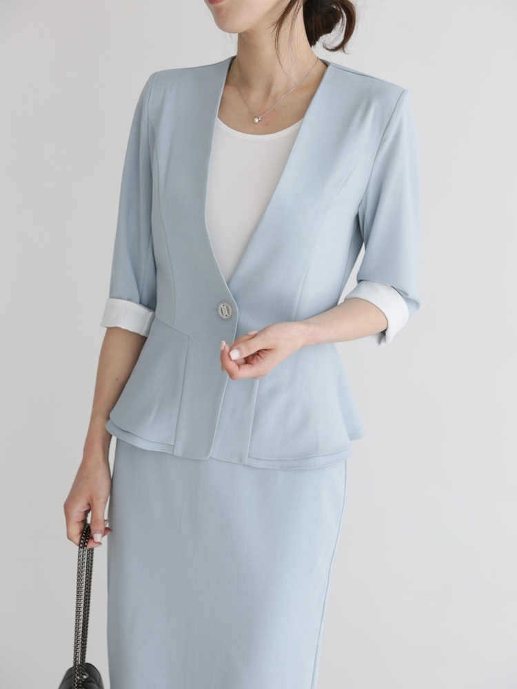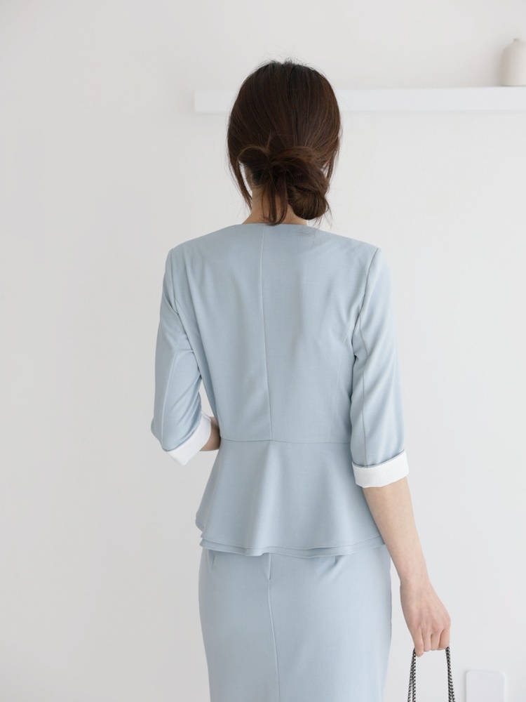 여름 노카라 페플럼 7부 자켓 오피스룩