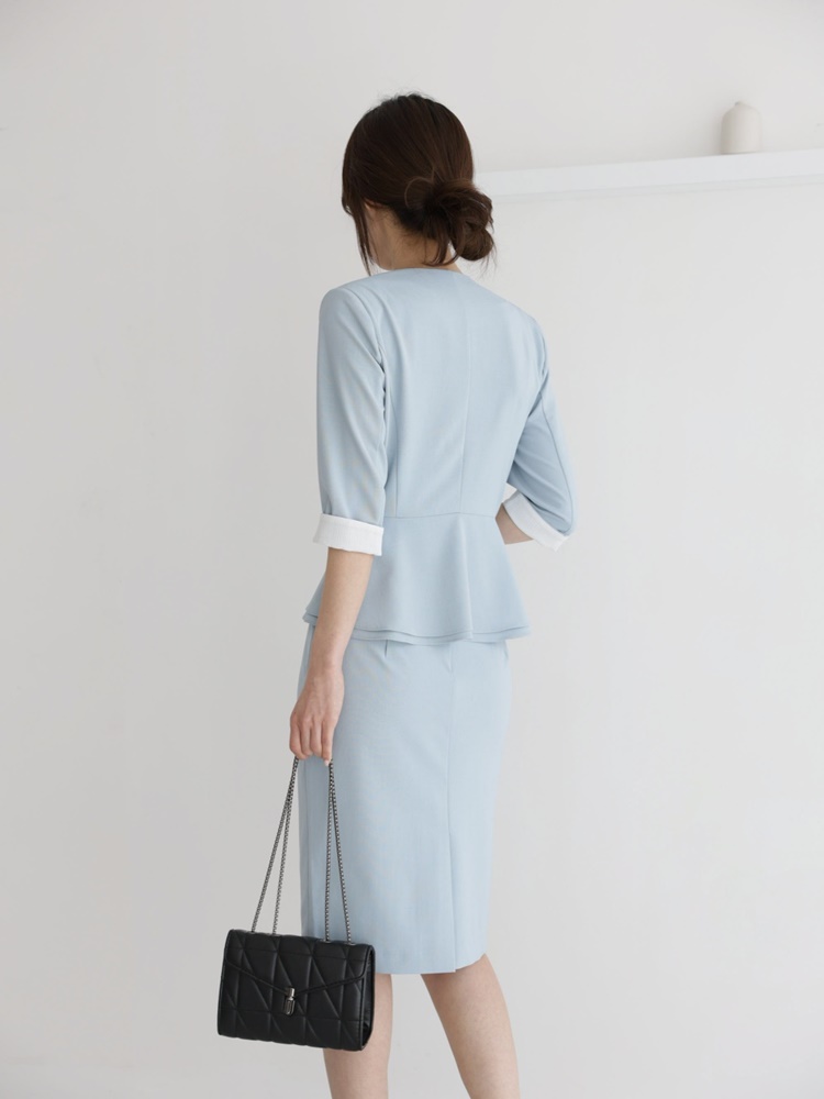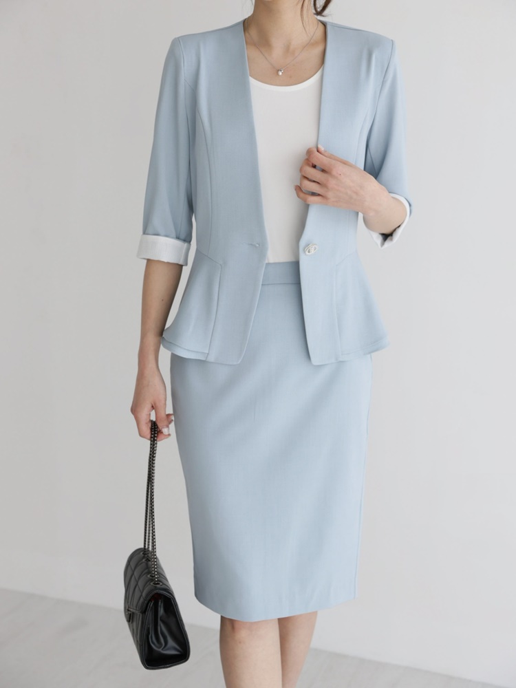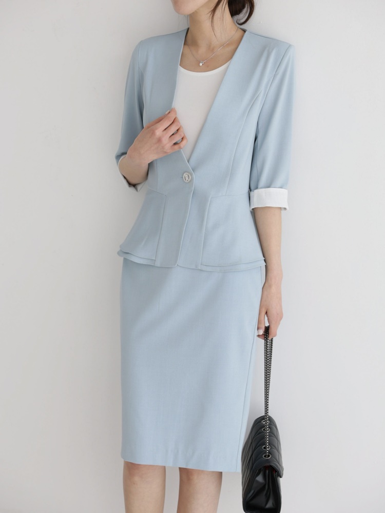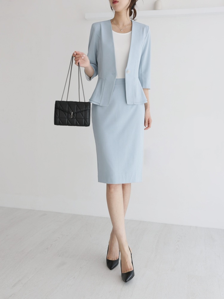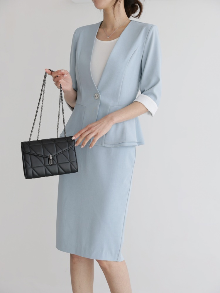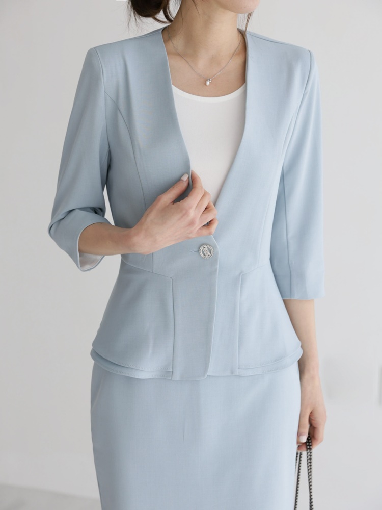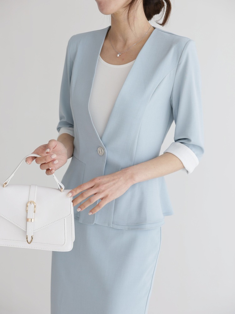 여름 노카라 페플럼 7부 자켓 오피스룩